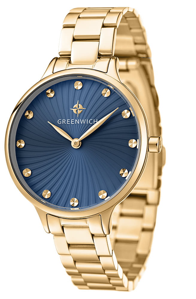 Женские наручные часы Greenwich GW 321.20.38 помогут дополнить образ элегантной особы, модель в лаконичном исполнении подойдёт для повседневной носки. Классический стиль перекликается с дизайнерскими решениями, позволяя экспериментировать с одеждой. Минималистичный циферблат украшен эмблемой в виде Розы Ветров, являющейся символом удачи и поддержки во всех начинаниях. Часы имеют прочный корпус и браслет из стали 316L, характеризующейся устойчивостью к коррозии, с с IP-покрытиемIP-покрытиеМетод ионного напыления. Демонстрирует повышенную устойчивость к истиранию, окислению и химическим веществам. Под воздействием высокого давления и температуры около 1500°C молекулы металла надёжно соединяются с частицами корпуса часов. цвета желтое золото. Высокая точность хода обеспечивается за счёт работы японского механизма. минеральное стеклоМинеральное стеклоМинеральное стекло представляет собой искусственно выращенный минерал кварца. Такое стекло отличается особой устойчивостью к повреждениям и царапинам. Уступает по некоторым качествам сапфировому стеклу. препятствует появлению царапин. Браслет с раскладывающейся застёжкойРаскладная застёжкаТакой тип застёжки используется только на браслетах из металла. Она никогда не раскрывается полностью, происходит разделение на 2 и более частей. Раскладывающая застёжка снизит вероятность потери часов к минимуму..