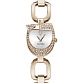 Женские наручные часы с минеральным стекломМинеральное стеклоМинеральное стекло представляет собой искусственно выращенный минерал кварца. Такое стекло отличается особой устойчивостью к повреждениям и царапинам. Уступает по некоторым качествам сапфировому стеклу. Guess TrendGW0683L3, кварцевый механизм с высокой точностью. Корпус и браслет часов изготовлены из нержавеющей стали с IP-покрытиемIP-покрытиеМетод ионного напыления. Демонстрирует повышенную устойчивость к истиранию, окислению и химическим веществам. Под воздействием высокого давления и температуры около 1500°C молекулы металла надёжно соединяются с частицами корпуса часов.. Циферблат украшен кристаллами. Класс водозащиты: 30 метров, позволит защитить корпус от случайных брызг или капель дождя.