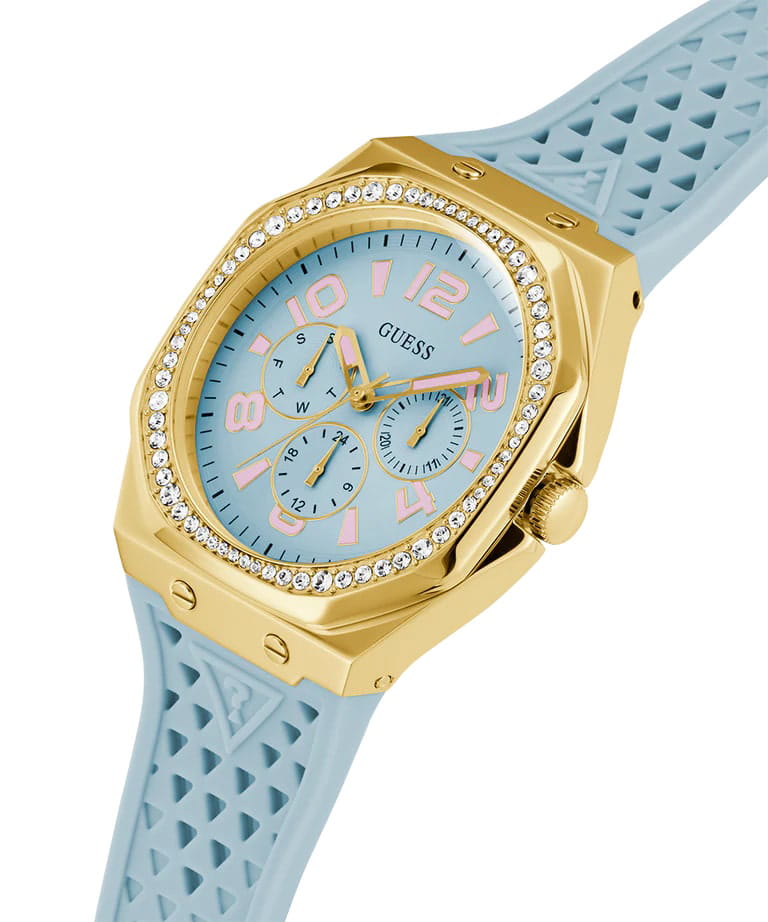 Женские наручные часы Guess Sport GW0694L1 с минеральным стекломМинеральное стеклоМинеральное стекло представляет собой искусственно выращенный минерал кварца. Такое стекло отличается особой устойчивостью к повреждениям и царапинам. Уступает по некоторым качествам сапфировому стеклу., кварцевый механизм с высокой точностью. Корпус часов изготовлен из нержавеющей стали с IP-покрытиемIP-покрытиеМетод ионного напыления. Демонстрирует повышенную устойчивость к истиранию, окислению и химическим веществам. Под воздействием высокого давления и температуры около 1500°C молекулы металла надёжно соединяются с частицами корпуса часов.. Стрелки с люминесцентным покрытиемЛюминесцентное покрытиеПозволяет считывать показания времени в темноте. Производители наносят на стрелки, часовые индексы, безель или поверхность циферблата светонакопительный состав, дающий холодное свечение.. Класс водозащиты: 30 метров, позволит защитить корпус от случайных брызг или капель дождя. Силиконовый ремешок.