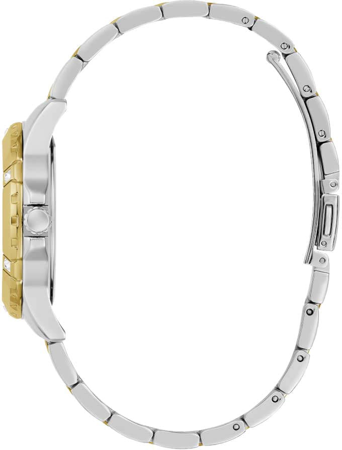 Женские наручные часы Guess Sport GW0723L1 с минеральным стекломМинеральное стеклоМинеральное стекло представляет собой искусственно выращенный минерал кварца. Такое стекло отличается особой устойчивостью к повреждениям и царапинам. Уступает по некоторым качествам сапфировому стеклу., кварцевый механизм с высокой точностью. Метки в виде штрихов. Класс водозащиты: 50 метров, позволит защитить корпус от случайных брызг или капель дождя. Корпус часов изготовлен из стали. Браслет с раскладной застёжкойРаскладная застёжкаТакой тип застёжки используется только на браслетах из металла. Она никогда не раскрывается полностью, происходит разделение на 2 и более частей. Раскладывающая застёжка снизит вероятность потери часов к минимуму.. Стрелки с люминесцентным покрытиемЛюминесцентное покрытиеПозволяет считывать показания времени в темноте. Производители наносят на стрелки, часовые индексы, безель или поверхность циферблата светонакопительный состав, дающий холодное свечение..