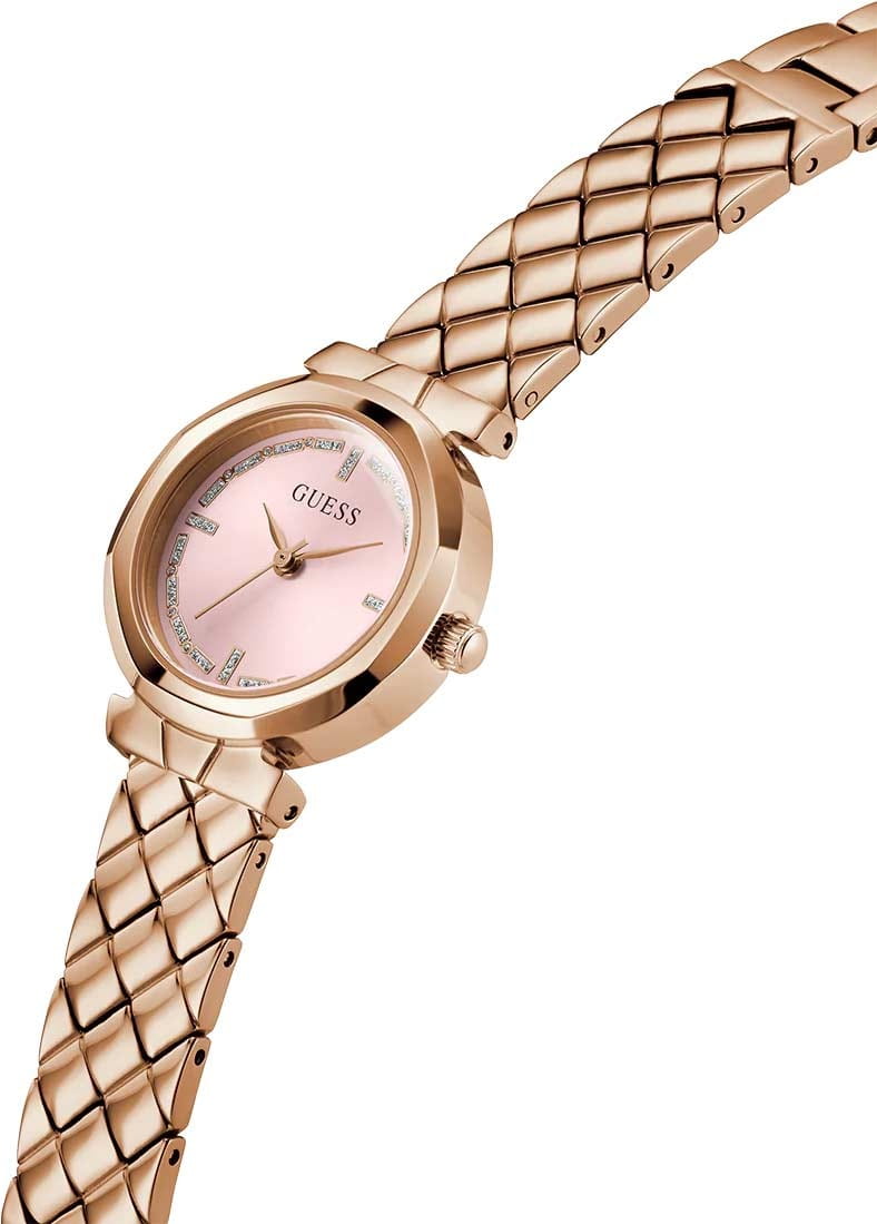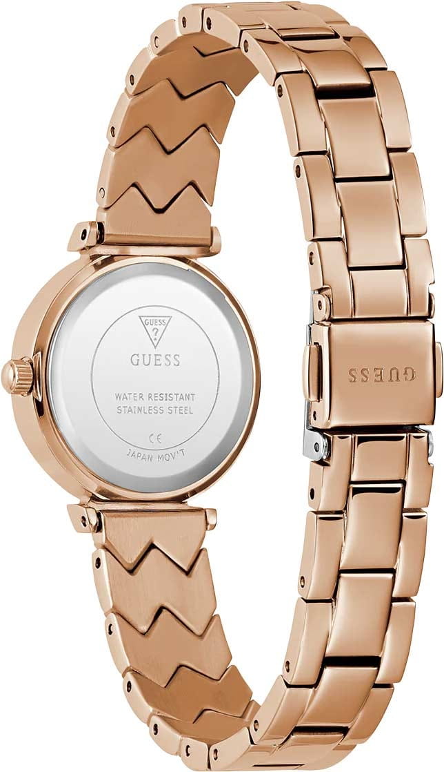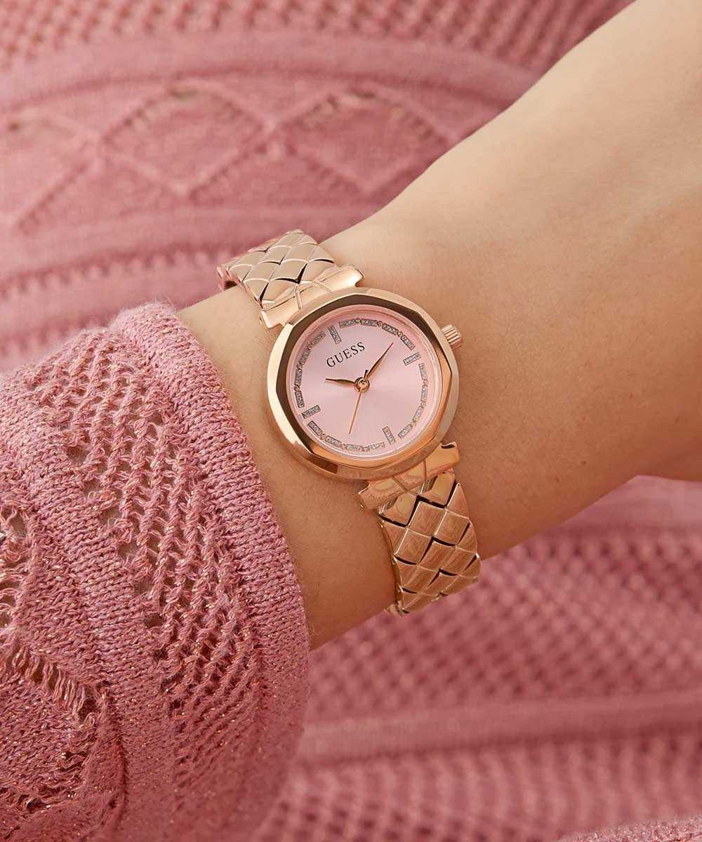 Эти роскошные часы Guess GW0839L3 созданы для тех, кто ценит стиль и изысканность в каждом элементе своего образа. Они оснащены надежным кварцевым механизмом, который гарантирует точность и долговечность. Корпус часов изготовлен из стали с IP-покрытиемIP-покрытиеМетод ионного напыления. Демонстрирует повышенную устойчивость к истиранию, окислению и химическим веществам. Под воздействием высокого давления и температуры около 1500°C молекулы металла надёжно соединяются с частицами корпуса часов. цвета розового золота, что придаёт ему элегантный и современный вид. Розовый циферблат, выполненный по технологии Sunray, притягивает взгляды своим сиянием и украшен кристаллами, добавляющими блеск и изящество. Метки в виде штрихов и рифленая заводная головка подчеркивают утонченность дизайна. Браслет также изготовлен из стали с IP-покрытиемIP-покрытиеМетод ионного напыления. Демонстрирует повышенную устойчивость к истиранию, окислению и химическим веществам. Под воздействием высокого давления и температуры около 1500°C молекулы металла надёжно соединяются с частицами корпуса часов. цвета розового золота и оснащен удобной раскладной застежкойРаскладная застёжкаТакой тип застёжки используется только на браслетах из металла. Она никогда не раскрывается полностью, происходит разделение на 2 и более частей. Раскладывающая застёжка снизит вероятность потери часов к минимуму., обеспечивающей комфортное ношение на запястье. Часы имеют водозащиту 30WR, что делает их устойчивыми к случайным брызгам. Минеральное стеклоМинеральное стеклоМинеральное стекло представляет собой искусственно выращенный минерал кварца. Такое стекло отличается особой устойчивостью к повреждениям и царапинам. Уступает по некоторым качествам сапфировому стеклу. защищает циферблат от царапин и повреждений. Эти часы станут идеальным аксессуаром, подчеркивающим индивидуальность и стиль своей обладательницы.