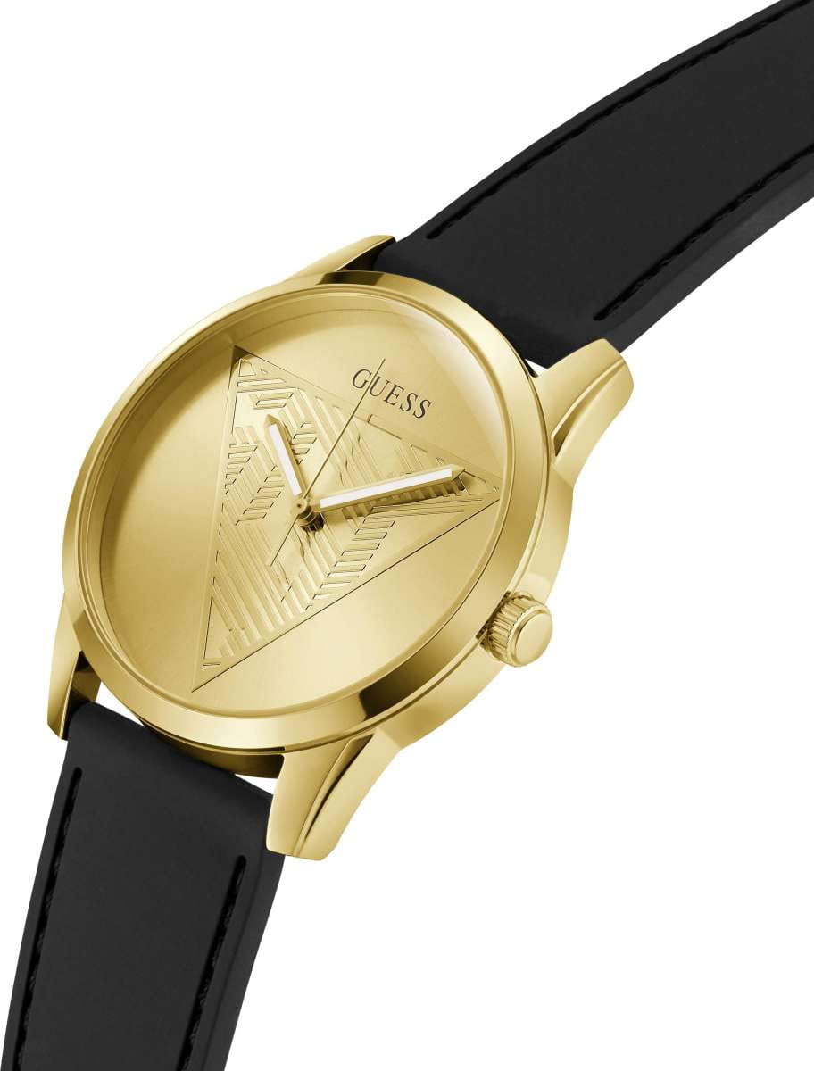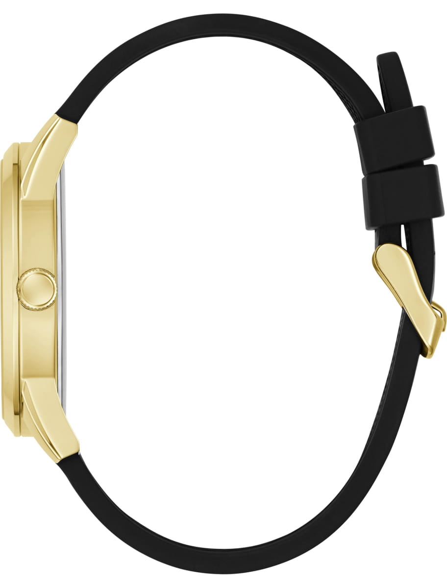 Часы Guess Trend Clark GW0957G2 — это изысканный аксессуар, который добавит вашему современному образу нотку гламура и элегантности. Часы оснащены надежным кварцевым механизмом, который обеспечивает точность и долговечность. Круглый стальной корпус с золотистым IP-покрытиемIP-покрытиеМетод ионного напыления. Демонстрирует повышенную устойчивость к истиранию, окислению и химическим веществам. Под воздействием высокого давления и температуры около 1500°C молекулы металла надёжно соединяются с частицами корпуса часов. и полированной поверхностью диаметром 42 мм придает часам стильный и современный вид. Золотистый циферблат создает утонченное и изысканное впечатление. Люминесцентное покрытиеЛюминесцентное покрытиеПозволяет считывать показания времени в темноте. Производители наносят на стрелки, часовые индексы, безель или поверхность циферблата светонакопительный состав, дающий холодное свечение. на стрелках обеспечивает отличную видимость в темноте. Часы оснащены рифленой заводной головкой для удобного управления. Кожаный черный ремешок с классической застежкой обеспечивает надежную фиксацию часов на руке и комфорт в ношении. Водозащита 50WR позволит мыть руки или гулять под дождем, не опасаясь того, что в корпус попадет вода, а минеральное стеклоМинеральное стеклоМинеральное стекло представляет собой искусственно выращенный минерал кварца. Такое стекло отличается особой устойчивостью к повреждениям и царапинам. Уступает по некоторым качествам сапфировому стеклу. защищает циферблат от царапин. Эта модель станет идеальным аксессуаром для ежедневного использования и особых мероприятий, подчеркивая вашу индивидуальность и стиль.