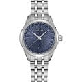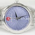 Синий циферблат украшен изящными линиями, создающими иллюзию движения, а сапфировое стеклоСапфировое стеклоПрочный и надёжный материал из кристалла сапфира синтетического происхождения, характеризующийся особой твёрдостью и устойчивостью к царапинам и повреждениям. защищает дисплей от царапин, сохраняя его идеальный вид. Часы оснащены точным кварцевым механизмом, гарантирующим надежность и стабильность хода.