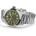 Hamilton Khaki Field Auto H70605160 — надёжные полевые часы с военным характером и швейцарской точностью, созданные для активного образа жизни. Корпус диаметром 42 мм выполнен из нержавеющей стали с сатинированной отделкой. Прозрачная задняя крышка позволяет наблюдать за работой механизма. Циферблат защищён выпуклым сапфировым стекломСапфировое стеклоПрочный и надёжный материал из кристалла сапфира синтетического происхождения, характеризующийся особой твёрдостью и устойчивостью к царапинам и повреждениям. с антибликовым покрытиемАнтибликовое покрытиеСлой оксида металла в 0,13-0,3 микрон, благодаря которому стекло часов не бликует и не отражает свет. Антибликовое покрытие уменьшает отражение света в 10 раз, обеспечивая отличную читаемость показателей циферблата.. Зелёный циферблат оформлен в классическом военном стиле: крупные арабские цифры, 24-часовая шкала по внутреннему кольцу и дата на позиции «3 часа». Стрелки и метки покрыты люминесцентным покрытиемЛюминесцентное покрытиеПозволяет считывать показания времени в темноте. Производители наносят на стрелки, часовые индексы, безель или поверхность циферблата светонакопительный состав, дающий холодное свечение., обеспечивая читаемость в любых условиях. Внутри установлен автоматический механизм H-10 с увеличенным запасом хода до 80 часов. Модель комплектуется браслетом из нержавеющей стали с раскладной застёжкойРаскладная застёжкаТакой тип застёжки используется только на браслетах из металла. Она никогда не раскрывается полностью, происходит разделение на 2 и более частей. Раскладывающая застёжка снизит вероятность потери часов к минимуму., обеспечивающей удобную и надёжную посадку. Водонепроницаемость 100 метров делает эту модель отличным выбором как для города, так и для активного отдыха. Hamilton Khaki Field Auto — идеальный баланс практичности, стиля и швейцарского качества.