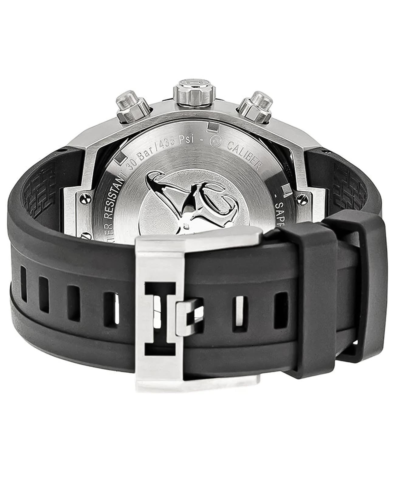 Мужские механические швейцарские часы-хронографХронографФункция позволяет измерять отрезки времени с особой точностью: часы, минуты, секунды. Верным признаком хронографа является наличие на циферблате 3 дополнительных окошек-счётчиков. Hamilton Khaki Navy Sub Auto Chrono H78716333. Корпус часов изготовлен из нержавеющей стали. Каучуковый ремешок на стандартной застёжке. Сапфировое стеклоСапфировое стеклоПрочный и надёжный материал из кристалла сапфира синтетического происхождения, характеризующийся особой твёрдостью и устойчивостью к царапинам и повреждениям. устойчивое к мелким механическим повреждениям. Класс водозащиты: 300 метров, позволит плавать, нырять и заниматься другими водными видами спорта. Стрелки и метки с люминесцентным покрытиемЛюминесцентное покрытиеПозволяет считывать показания времени в темноте. Производители наносят на стрелки, часовые индексы, безель или поверхность циферблата светонакопительный состав, дающий холодное свечение.. Окошко даты находится в положении между 4 и 5 часов. БезельБезельВнешний ободок, закрепляющий стекло. В спортивных часах так называется поворотное кольцо с делениями на циферблате, выполняет роль таймера – замеряет отрезки времени на шкале. Неподвижный безель – элемент декора. Однонаправленно вращающийся безель на дайверских часах позволяет фиксировать моменты погружения и выныривания на поверхность. с PVD-покрытиемPVDУльтратонкое покрытие наносится в технике вакуумного напыления, сочетает в себе нитрид титана особой прочности со слоем золота или оксида хрома. Несёт в себе декоративную или защитную функцию..