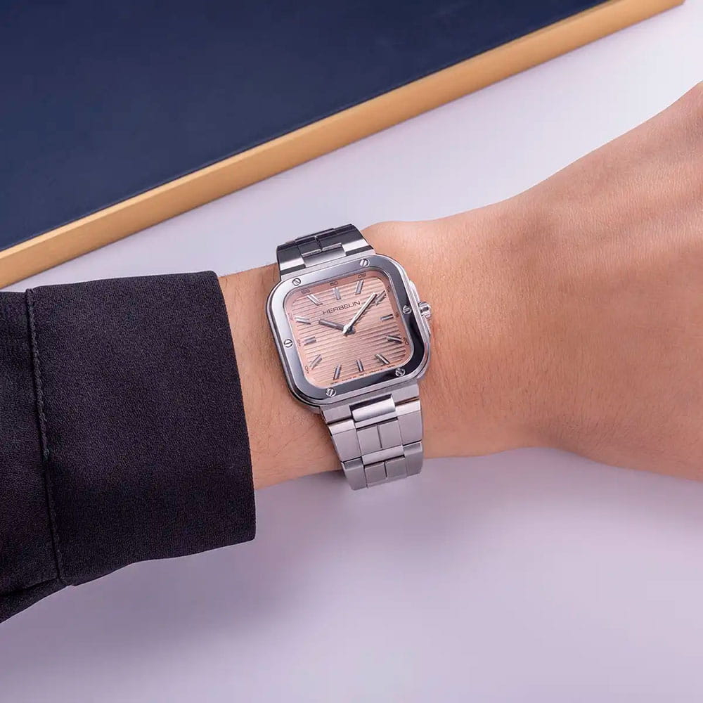 Женские кварцевые часы Herbelin Cap Camarat 17546B18 – отражающий идеальное сочетание современного дизайна, надёжности и функциональности. Элегантный облик станет превосходным завершением образа, наделив его индивидуальным характером. Корпус из нержавеющей стали серебристого цвета, размером 30 х 30 мм, идеально сбалансирован и элегантен. Сапфировое стеклоСапфировое стеклоПрочный и надёжный материал из кристалла сапфира синтетического происхождения, характеризующийся особой твёрдостью и устойчивостью к царапинам и повреждениям. защищает циферблат от царапин и устойчивое к механическим повреждениям. БезельБезельВнешний ободок, закрепляющий стекло. В спортивных часах так называется поворотное кольцо с делениями на циферблате, выполняет роль таймера – замеряет отрезки времени на шкале. Неподвижный безель – элемент декора. Однонаправленно вращающийся безель на дайверских часах позволяет фиксировать моменты погружения и выныривания на поверхность. украшен винтами, заводная головка с защитой. Стрелки и метки с люминесцентным покрытиемЛюминесцентное покрытиеПозволяет считывать показания времени в темноте. Производители наносят на стрелки, часовые индексы, безель или поверхность циферблата светонакопительный состав, дающий холодное свечение.. Стальной браслет на застёжке-бабочке с кнопкамиЗастёжка "бабочка"Такой вид застёжки дополняется предохранителями, помогающими избежать случайного раскрытия браслета. Обладают изящным исполнением. обеспечивает комфортное ношение. Водозащита 100 метров позволит плавать, нырять и заниматься другими водными видами спорта. Эта модель – отличный выбор для тех, кто ищет сочетание стиля, качества и функциональности. Часы станут не только полезным аксессуаром, но и выразительным элементом вашего имиджа.