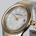 Циферблат покрыт перламутром и оснащен окошком даты на трех часах, которое выделено накладной рамкой. В каждой, отполированной до зеркального блеска, риске отражается сияние кристаллов Swarovski— на циферблате их ровно двенадцать. Эти кристаллы, помимо декоративной функции, помогают определять время.