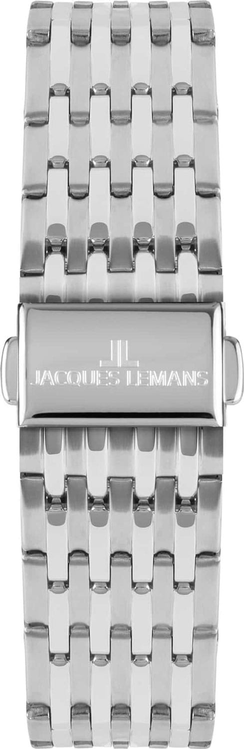 Мужские часы Jacques Lemans 1-2193I – лаконичная красота и изысканная элегантность. Корпус из нержавеющей стали диаметром 40 мм идеально сбалансирован и элегантен. Ударопрочное минеральное стеклоМинеральное стеклоМинеральное стекло представляет собой искусственно выращенный минерал кварца. Такое стекло отличается особой устойчивостью к повреждениям и царапинам. Уступает по некоторым качествам сапфировому стеклу. Crystex защищает циферблат от царапин. Стальной браслет на застёжке-бабочке с кнопкамиЗастёжка "бабочка"Такой вид застёжки дополняется предохранителями, помогающими избежать случайного раскрытия браслета. Обладают изящным исполнением. . Крупные накладные риски хорошо читаются благодаря PVD-покрытиюPVDУльтратонкое покрытие наносится в технике вакуумного напыления, сочетает в себе нитрид титана особой прочности со слоем золота или оксида хрома. Несёт в себе декоративную или защитную функцию. из розового золота. Водозащита 50 метров защищает часы от брызг и дождя, делая их подходящими для повседневного использования. Стрелки и метки с люминесцентным покрытиемЛюминесцентное покрытиеПозволяет считывать показания времени в темноте. Производители наносят на стрелки, часовые индексы, безель или поверхность циферблата светонакопительный состав, дающий холодное свечение. позволяющие легко определять время даже в темноте. Окошко даты находится в положении 6 часов. Широкое окошко дня недели в положении 12 часов позволяет показывать название дня недели полностью, без сокращений.