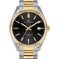 Мужские наручные часы, выпущенные в честь 50-летия компании Jacques Lemans. Кварцевый механизм с высокой точностью. Минеральное стеклоМинеральное стеклоМинеральное стекло представляет собой искусственно выращенный минерал кварца. Такое стекло отличается особой устойчивостью к повреждениям и царапинам. Уступает по некоторым качествам сапфировому стеклу. устойчивое к появлению царапин, обладающее высокой прозрачностью. Окошко даты расположилось на трех часах. Стрелки и метки с люминесцентным покрытиемЛюминесцентное покрытиеПозволяет считывать показания времени в темноте. Производители наносят на стрелки, часовые индексы, безель или поверхность циферблата светонакопительный состав, дающий холодное свечение.. БезельБезельВнешний ободок, закрепляющий стекло. В спортивных часах так называется поворотное кольцо с делениями на циферблате, выполняет роль таймера – замеряет отрезки времени на шкале. Неподвижный безель – элемент декора. Однонаправленно вращающийся безель на дайверских часах позволяет фиксировать моменты погружения и выныривания на поверхность. с PVD-покрытиемPVDУльтратонкое покрытие наносится в технике вакуумного напыления, сочетает в себе нитрид титана особой прочности со слоем золота или оксида хрома. Несёт в себе декоративную или защитную функцию.. Класс водозащиты: 100 метров, позволит плавать, нырять и заниматься другими водными видами спорта. Корпус из нержавеющей стали. Браслет часов изготовлен из нержавеющей стали с частичным PVD-покрытиемPVDУльтратонкое покрытие наносится в технике вакуумного напыления, сочетает в себе нитрид титана особой прочности со слоем золота или оксида хрома. Несёт в себе декоративную или защитную функцию..