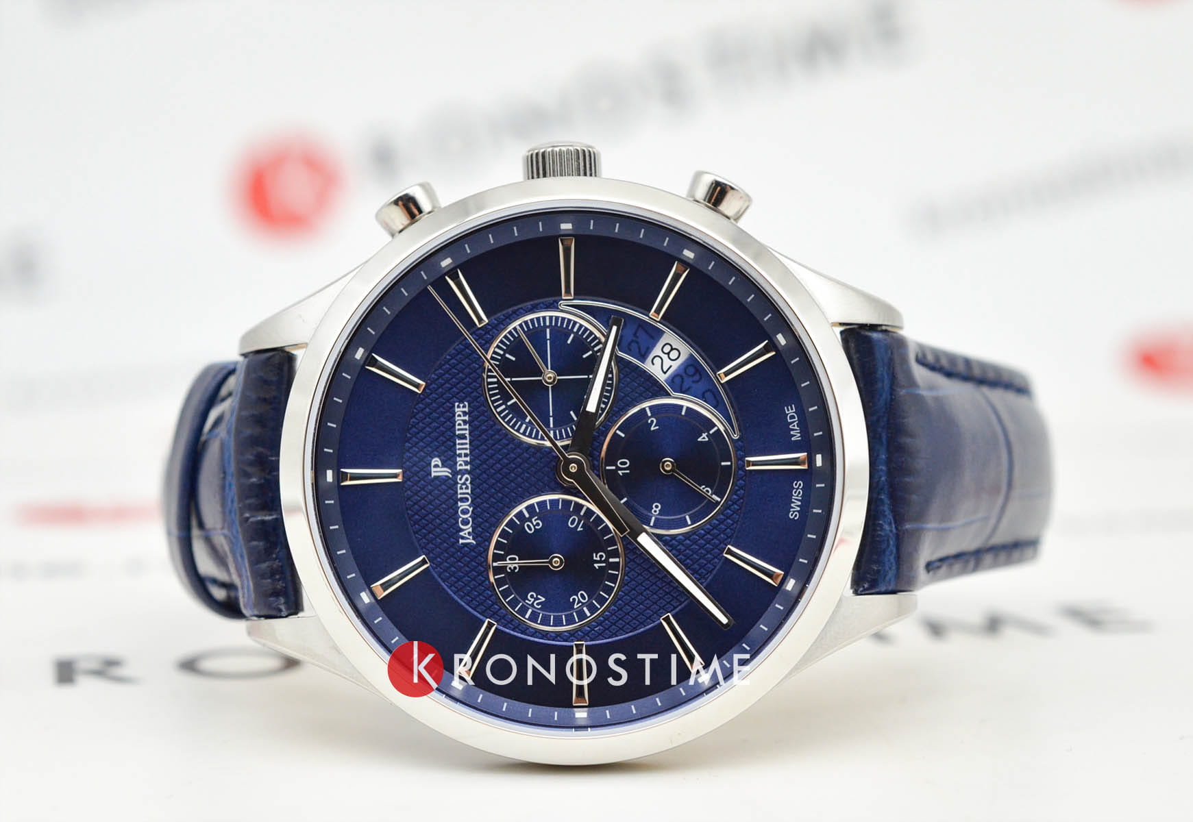Часы Jacques Philippe JPQGC031132 сочетают в себе элегантный дизайн и высокое качество швейцарского часового мастерства. Корпус диаметром 43 мм выполнен из нержавеющей стали, а синий циферблат защищён сапфировым стекломСапфировое стеклоПрочный и надёжный материал из кристалла сапфира синтетического происхождения, характеризующийся особой твёрдостью и устойчивостью к царапинам и повреждениям..
