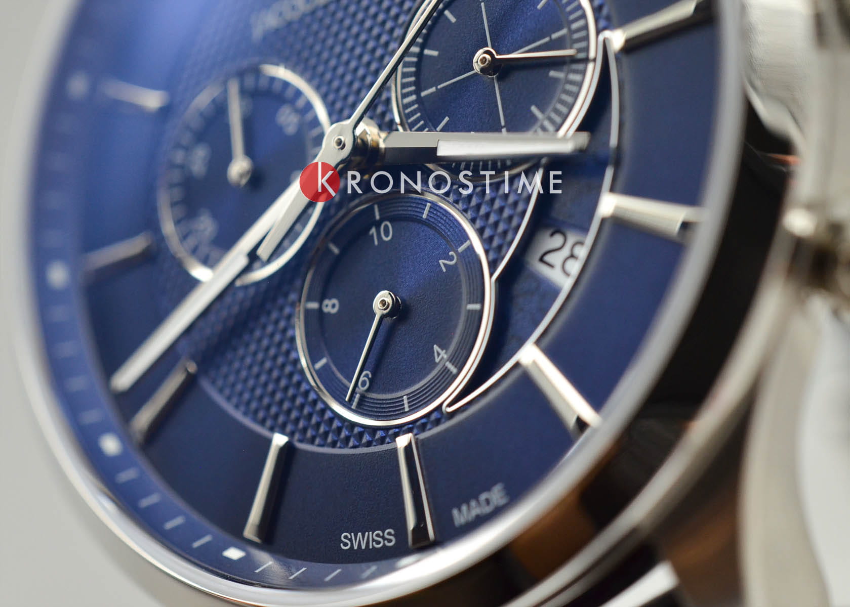Внутри установлен швейцарский кварцевый механизм, обеспечивающий высокую точность хода. Функции хронографаХронографФункция позволяет измерять отрезки времени с особой точностью: часы, минуты, секунды. Верным признаком хронографа является наличие на циферблате 3 дополнительных окошек-счётчиков. и отображения даты добавляют практичности в повседневном использовании.