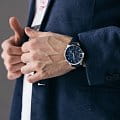 Водозащита 5 ATM защищает часы от брызг и дождя. Кожаный ремешок синего цвета с классической застёжкой обеспечивает комфортное ношение и надёжную фиксацию на запястье.