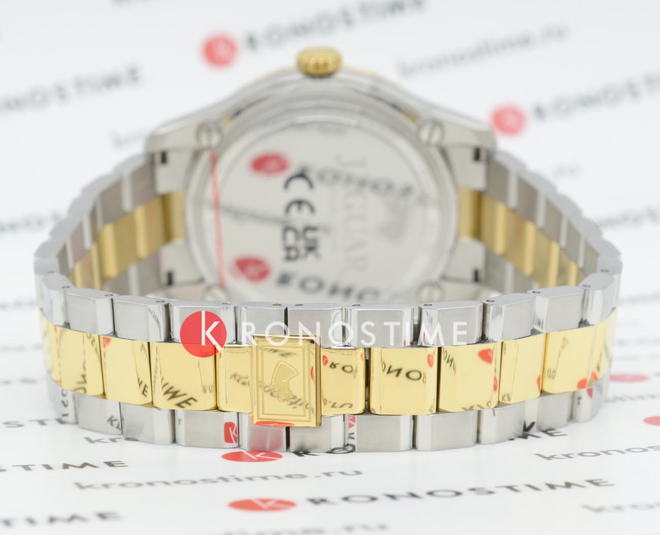 Часы Jaguar ESSENTIA J1043/1 - это воплощение элегантности и точности, созданное для современного мужчины. Эта швейцарская модель отличается изысканным дизайном и высоким качеством исполнения. Корпус часов выполнен из нержавеющей стали серебристого цвета, что придает им благородный и стильный вид. Циферблат защищен сапфировым стекломСапфировое стеклоПрочный и надёжный материал из кристалла сапфира синтетического происхождения, характеризующийся особой твёрдостью и устойчивостью к царапинам и повреждениям., которое славится своей прочностью и устойчивостью к царапинам, обеспечивая долговечность и безупречный внешний вид часов. Неподвижный золотистый безельБезельВнешний ободок, закрепляющий стекло. В спортивных часах так называется поворотное кольцо с делениями на циферблате, выполняет роль таймера – замеряет отрезки времени на шкале. Неподвижный безель – элемент декора. Однонаправленно вращающийся безель на дайверских часах позволяет фиксировать моменты погружения и выныривания на поверхность.. Браслет, также изготовленный из нержавеющей стали с золотистым PVD-покрытиемPVDУльтратонкое покрытие наносится в технике вакуумного напыления, сочетает в себе нитрид титана особой прочности со слоем золота или оксида хрома. Несёт в себе декоративную или защитную функцию., гармонично сочетается с корпусом, создавая целостный и утонченный образ. Диаметр корпуса составляет 40 мм, что делает часы идеальными для мужского запястья. Модель ESSENTIA J1043/1 оснащена швейцарским кварцевым механизмом, гарантирующим высокую точность хода, а также функцией отображения даты, что добавляет практичности этому стильному аксессуару. Часы Jaguar J1043/1- это не просто инструмент для измерения времени, но и статусный аксессуар, который подчеркнет безупречный вкус и уверенность своего владельца. Они идеально подойдут как для деловых встреч, так и для особых случаев, всегда оставаясь верным спутником современного мужчины, ценящего качество и стиль. Браслет имеет скрытую застёжку «бабочка» с кнопкамиЗастёжка "бабочка"Такой вид застёжки дополняется предохранителями, помогающими избежать случайного раскрытия браслета. Обладают изящным исполнением. .