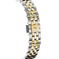 Женские швейцарские часы Jaguar Automatic Woman J998/2, механизм — автоподзавод. В часах с автоподзаводом заводная головка практически не используется, что исключает истирание ее материала и материала корпуса. Сапфировое стеклоСапфировое стеклоПрочный и надёжный материал из кристалла сапфира синтетического происхождения, характеризующийся особой твёрдостью и устойчивостью к царапинам и повреждениям. устойчивое к мелким механическим повреждениям. Корпус и браслет часов изготовлены из нержавеющей стали. Окошко даты находится в положении 6 часов. Класс водозащиты: 50 метров, позволит защитить корпус от случайных брызг или капель дождя. Стальной браслет с частичным PVD-покрытиемPVDУльтратонкое покрытие наносится в технике вакуумного напыления, сочетает в себе нитрид титана особой прочности со слоем золота или оксида хрома. Несёт в себе декоративную или защитную функцию. на застёжке-бабочке с кнопкамиЗастёжка "бабочка"Такой вид застёжки дополняется предохранителями, помогающими избежать случайного раскрытия браслета. Обладают изящным исполнением. . БезельБезельВнешний ободок, закрепляющий стекло. В спортивных часах так называется поворотное кольцо с делениями на циферблате, выполняет роль таймера – замеряет отрезки времени на шкале. Неподвижный безель – элемент декора. Однонаправленно вращающийся безель на дайверских часах позволяет фиксировать моменты погружения и выныривания на поверхность. с PVD-покрытиемPVDУльтратонкое покрытие наносится в технике вакуумного напыления, сочетает в себе нитрид титана особой прочности со слоем золота или оксида хрома. Несёт в себе декоративную или защитную функцию. инкрустирован цирконием.