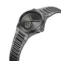 Kenneth Cole KCWGY0067405 — мужская автоматическая модель с современным минималистичным дизайном и акцентом на архитектурные линии. Корпус и браслет выполнены из нержавеющей стали с тёмным PVDPVDУльтратонкое покрытие наносится в технике вакуумного напыления, сочетает в себе нитрид титана особой прочности со слоем золота или оксида хрома. Несёт в себе декоративную или защитную функцию.-покрытием, что придаёт часам стильный и строгий облик. В центре внимания — циферблат с открытым окном, через которое можно наблюдать за работой автоматического механизма. Стрелки покрыты люминесцентным покрытиемЛюминесцентное покрытиеПозволяет считывать показания времени в темноте. Производители наносят на стрелки, часовые индексы, безель или поверхность циферблата светонакопительный состав, дающий холодное свечение., обеспечивающим читаемость в условиях слабого освещения. Защиту конструкции выполняет минеральное стеклоМинеральное стеклоМинеральное стекло представляет собой искусственно выращенный минерал кварца. Такое стекло отличается особой устойчивостью к повреждениям и царапинам. Уступает по некоторым качествам сапфировому стеклу., устойчивое к повседневным повреждениям. Браслет оснащён раскладной застёжкойРаскладная застёжкаТакой тип застёжки используется только на браслетах из металла. Она никогда не раскрывается полностью, происходит разделение на 2 и более частей. Раскладывающая застёжка снизит вероятность потери часов к минимуму., гарантирующей удобство фиксации и надёжность при носке. Модель сочетает техническую эстетику сквозного механизма и современный характер, подчёркивая индивидуальность владельца.