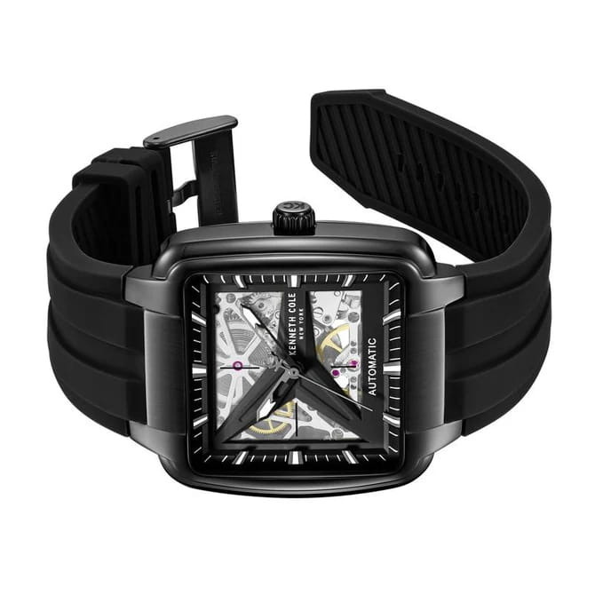 Мужские механические часы с автоподзаводом Kenneth Cole — это выразительный и элегантный аксессуар. Корпус размером 40 мм выполнен из нержавеющей стали 316L с IP-покрытиемIP-покрытиеМетод ионного напыления. Демонстрирует повышенную устойчивость к истиранию, окислению и химическим веществам. Под воздействием высокого давления и температуры около 1500°C молекулы металла надёжно соединяются с частицами корпуса часов.. Циферблат чёрного цвета оформлен в стиле скелетон, что позволяет наблюдать за работой механизма. Циферблат защищён минеральным стекломМинеральное стеклоМинеральное стекло представляет собой искусственно выращенный минерал кварца. Такое стекло отличается особой устойчивостью к повреждениям и царапинам. Уступает по некоторым качествам сапфировому стеклу.. Механизм — автоматический с функцией подзавода от движения руки. Прозрачная задняя крышка открывает вид на механизм. Часы оснащены силиконовым ремешком с стандартной застёжкой. Водонепроницаемость 50 м позволяет использовать часы в повседневных условиях. Идеальный выбор для тех, кто ценит стиль, технологии и американское качество.