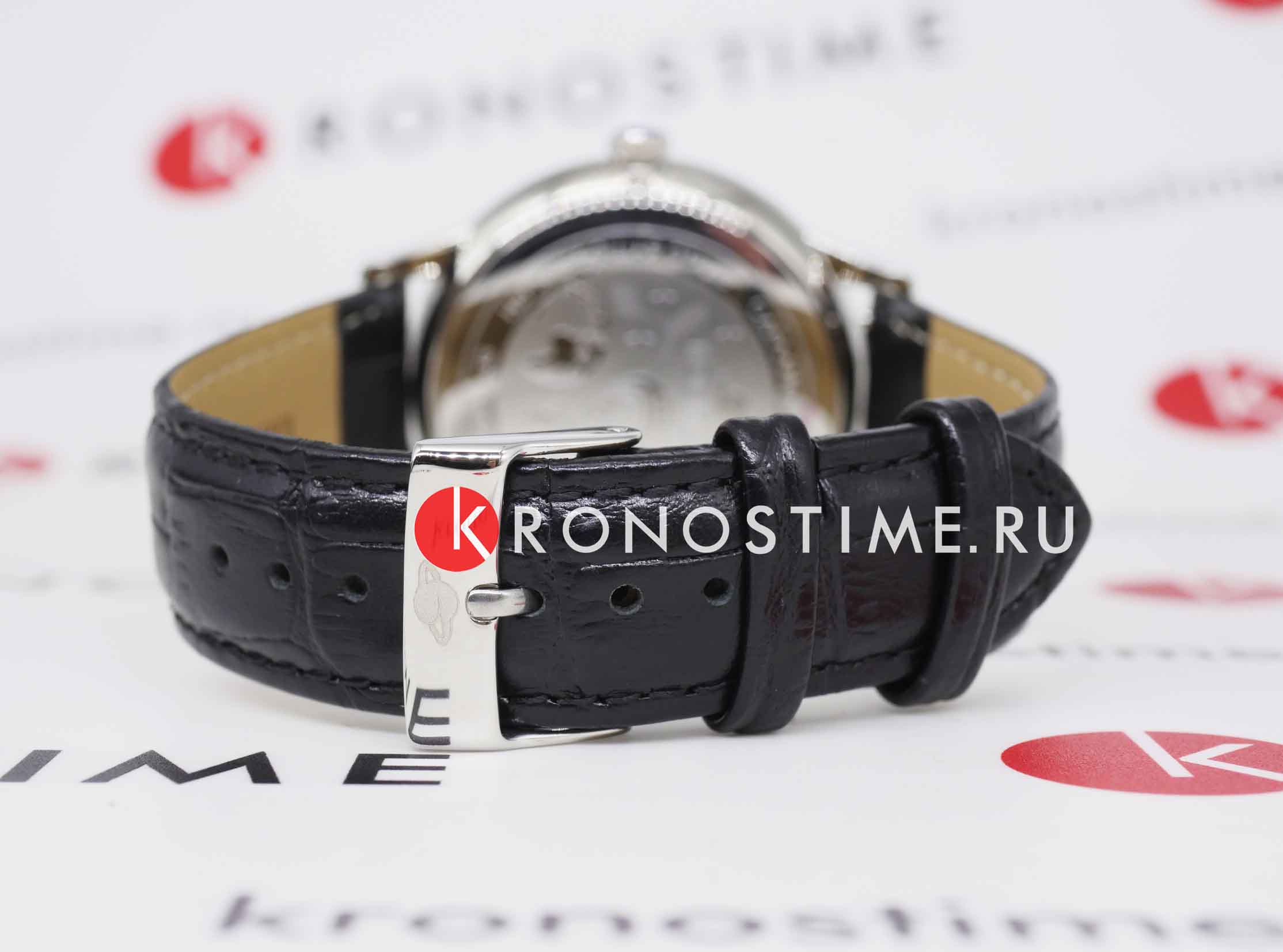 Мужские наручные часы Космос Космопорт K 058.11.33 — это сочетание традиций часового искусства 60-70-х годов и футуристического дизайна, вдохновленного космическими исследованиями. Они не только служат напоминанием о прошлом, но и побуждают задуматься о будущем, позволяя наслаждаться качеством и смыслом, вложенными в каждую деталь. Полированный корпус часов выполнен в виде силуэта летающей тарелки благодаря выпуклым формам стекла и нижней части корпуса. Стальные ушки, которые напоминают опоры летающей тарелки, завершает общий образ. На задней крышке часов выгравирован фантазийный сюжет – космическая станция будущего. Циферблат светло-серого цвета выполнен в ретро стиле с закруглёнными краями, что требует применения сложной технологии производства, характерной для часов прошлых лет. Кончик секундной стрелки повторяет эту форму, а на выпуклом градиентном циферблате выполнена шлифовка, напоминающая солнечные лучи. Индексы, изготовленные вручную и закрепленные на двух штифтах, добавляют изысканности. Также присутствуют ретроградные индикаторы даты и второго времени (24 часа), которые возвращаются в исходное положение одним движением.  Люминесцентное покрытиеЛюминесцентное покрытиеПозволяет считывать показания времени в темноте. Производители наносят на стрелки, часовые индексы, безель или поверхность циферблата светонакопительный состав, дающий холодное свечение. на часовой и минутной стрелках, а также на стрелках ретроградных индикаторов и окантовке циферблата создает эффект светящегося ореола в темноте. Форма минерального стеклаМинеральное стеклоМинеральное стекло представляет собой искусственно выращенный минерал кварца. Такое стекло отличается особой устойчивостью к повреждениям и царапинам. Уступает по некоторым качествам сапфировому стеклу., представляющего собой двояковыпуклую конструкцию, тщательно проработана. Такое стекло не искажает изображение на циферблате, потому что внутренняя поверхность остаётся плоской, создавая эффект линзы. Производственный процесс для достижения двух параллельно изогнутых поверхностей очень сложен, и требуется высокая точность, чтобы избежать повреждения стекла. Ремешок из черной натуральной кожи оснащён креплениями, которые позволяют легко снимать и надевать его без использования дополнительных инструментов. Заводная головка, застежка и ремешок украшены фирменным логотипом, что подчеркивает индивидуальность и стиль этих часов.
