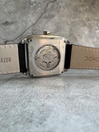 Мужские наручные часы Космос Марсоход K 213.11.37 — это уникальная лимитированная серия, созданная в честь одного из самых амбициозных проектов в истории космических исследований. Модель объединяет дух советского инженерного наследия с современными технологиями, создавая аксессуар, сочетающий прочность, функциональность и ретро-стиль. Часы оснащены механическим механизмом с автоподзаводом от Seiko TMI, известным своей надёжностью и точностью. Корпус выполнен из нержавеющей стали 316L в форме квадрата с закруглёнными углами и дополнен сочетанием зеркальной полировки и сатинированной отделки, что придаёт модели солидность и оригинальность. Циферблат зелёного цвета имеет двухуровневую структуру. Центральный уровень содержит три стрелки, часовая и минутная из которых оснащены люминесцентным покрытиемЛюминесцентное покрытиеПозволяет считывать показания времени в темноте. Производители наносят на стрелки, часовые индексы, безель или поверхность циферблата светонакопительный состав, дающий холодное свечение. для отличной читаемости даже в условиях слабого освещения. Индикация дня недели и даты представлена сразу на двух языках — русском и английском, что делает модель удобной для международного использования. Защиту циферблата обеспечивает сапфировое стеклоСапфировое стеклоПрочный и надёжный материал из кристалла сапфира синтетического происхождения, характеризующийся особой твёрдостью и устойчивостью к царапинам и повреждениям. с антибликовым покрытиемАнтибликовое покрытиеСлой оксида металла в 0,13-0,3 микрон, благодаря которому стекло часов не бликует и не отражает свет. Антибликовое покрытие уменьшает отражение света в 10 раз, обеспечивая отличную читаемость показателей циферблата., устойчивое к царапинам и повреждениям, гарантирующее чёткость восприятия информации при любом освещении. Заводная головка выполнена в форме гайки, что придаёт модели индустриальный шарм и подчёркивает её техническую направленность. Задняя крышка — прозрачная и закреплена на четырёх винтах, а также содержит индивидуальный номер модели, что подчёркивает её эксклюзивность. Первый выпуск ограничен 50 экземплярами с номерами от 01/50 до 50/50, второй выпуск — 150 штуками с номерами от 051/200 до 200/200. Ремешок изготовлен из натуральной кожи чёрного цвета и оснащён застёжкой с фирменным логотипом. Ширина ремешка составляет 26 мм, что обеспечивает плотное и комфортное прилегание на запястье. Часы обладают водонепроницаемостью , что позволяет использовать их при плавании и других водных активностях. Эти часы станут универсальным аксессуаром для тех, кто ценит сочетание истории, технологичности и стиля — идеальный выбор для уверенных в себе мужчин, следящих за своим имиджем и предпочитающих выделяться.