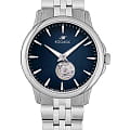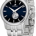 Мужские наручные часы Космос Телескоп K 304.10.36 —  это уникальная лимитированная серия под названием Телескоп, посвящена аппарату приоткрывающего взгляду бескрайние дали космического пространства. Апертура открытого баланса модели по форме напоминает круглую линзу телескопа. Сквозь это окошко, расположенное на черном циферблате, также можно увидеть много интересного: ту самую систему «баланс-спираль» автоматического механизма, которая отвечает за точность хода. Корпус часов выполнен из нержавеющей стали, классической круглой формы и достаточно тонкий для механических моделей. Это стало возможным благодаря использованию механизма Miyota, калибр 9029, с высотой всего 3.9 мм. Циферблат декорирован вертикальной текстурой в ретро-стиле, по которой движутся крупные часовая и минутная стрелки, имеющие люминесцентное покрытиеЛюминесцентное покрытиеПозволяет считывать показания времени в темноте. Производители наносят на стрелки, часовые индексы, безель или поверхность циферблата светонакопительный состав, дающий холодное свечение., позволяющее определять время даже в темноте. Циферблат защищен прочным сапфировым стеклом с антибликовым покрытиемСапфировое стеклоПрочный и надёжный материал из кристалла сапфира синтетического происхождения, характеризующийся особой твёрдостью и устойчивостью к царапинам и повреждениям., обеспечивающим отличную читаемость показаний в любых условиях. Прозрачная задняя крышка, закрепленная на четырех винтах, демонстрирует механизм и содержит выгравированный индивидуальный номер экземпляра  хх/50, отражающий лимитированный тираж всего в 50 штук. Браслет изготовлен из нержавеющей стали и оснащен удобной застёжкой «бабочка» с кнопкамиЗастёжка "бабочка"Такой вид застёжки дополняется предохранителями, помогающими избежать случайного раскрытия браслета. Обладают изящным исполнением. , которая сводит к минимуму вероятность потери. Модель Телескоп сочетает классический дизайн и универсальность, прекрасно подходя как к деловому костюму, так и к более повседневным образам.