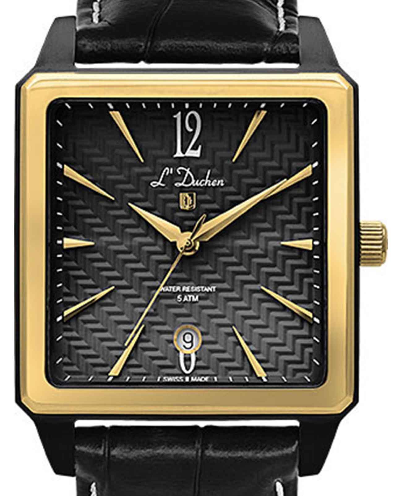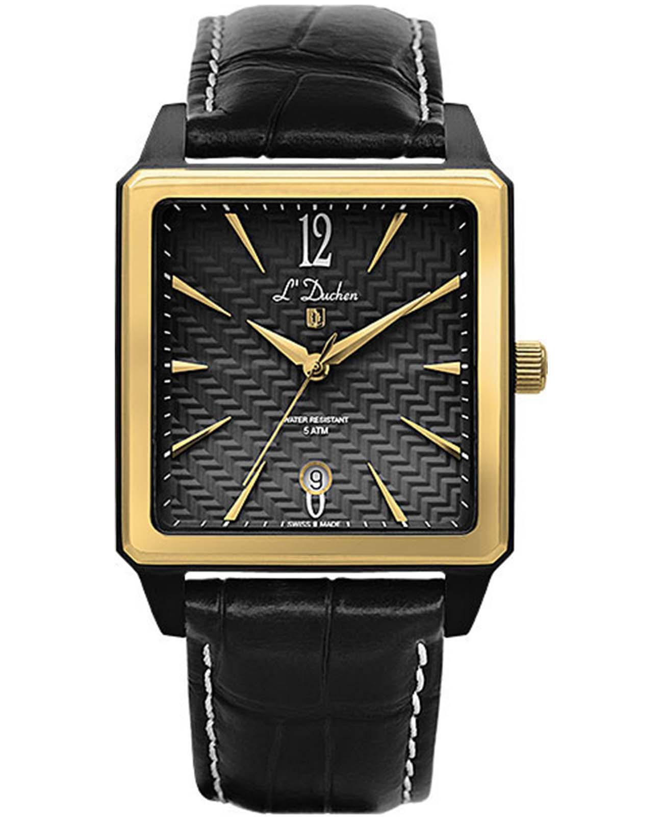 Мужские швейцарские LDuchen Charisme D 451.81.21, кварцевый механизм с высокой точностью. Сапфировое стеклоСапфировое стеклоПрочный и надёжный материал из кристалла сапфира синтетического происхождения, характеризующийся особой твёрдостью и устойчивостью к царапинам и повреждениям. устойчивое к появлению царапин, обладающее высокой прозрачностью. Корпус часов выполнен из нержавеющей стали с PVD-покрытиемPVDУльтратонкое покрытие наносится в технике вакуумного напыления, сочетает в себе нитрид титана особой прочности со слоем золота или оксида хрома. Несёт в себе декоративную или защитную функцию.. Окошко даты находится в положении 6 часов. Класс водозащиты: 50 метров, позволит защитить корпус от случайных брызг или капель дождя. Кожаный ремешок на застёжке «бабочка» с кнопкамиЗастёжка "бабочка"Такой вид застёжки дополняется предохранителями, помогающими избежать случайного раскрытия браслета. Обладают изящным исполнением. .