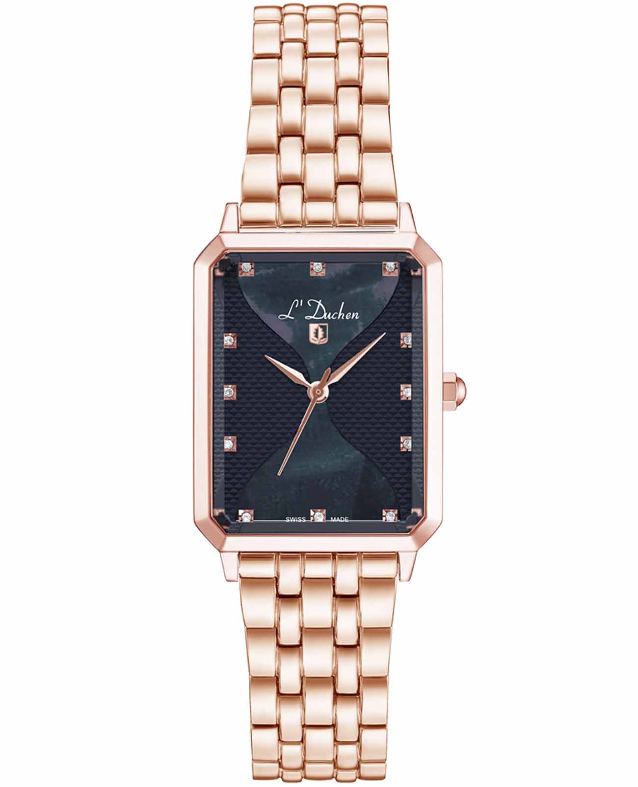 Женские швейцарские L'Duchen Pyramide D 591.40.31, кварцевый механизм с высокой точностью. Сапфировое стеклоСапфировое стеклоПрочный и надёжный материал из кристалла сапфира синтетического происхождения, характеризующийся особой твёрдостью и устойчивостью к царапинам и повреждениям. устойчивое к появлению царапин, обладающее высокой прозрачностью. Корпус часов выполнен из нержавеющей стали с PVD-покрытиемPVDУльтратонкое покрытие наносится в технике вакуумного напыления, сочетает в себе нитрид титана особой прочности со слоем золота или оксида хрома. Несёт в себе декоративную или защитную функцию.. Циферблат украшен фианитами. Класс водозащиты: 50 метров, позволит защитить корпус от случайных брызг или капель дождя. Стальной браслет с PVD-покрытиемPVDУльтратонкое покрытие наносится в технике вакуумного напыления, сочетает в себе нитрид титана особой прочности со слоем золота или оксида хрома. Несёт в себе декоративную или защитную функцию. на застёжке-бабочке с кнопкамиЗастёжка "бабочка"Такой вид застёжки дополняется предохранителями, помогающими избежать случайного раскрытия браслета. Обладают изящным исполнением. .