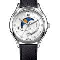 Женские кварцевые часы L'Duchen из коллекции Perseides — это волшебный аксессуар, вдохновлённый космическим зрелищем метеорного потока. Корпус диаметром 34 мм выполнен из нержавеющей стали 316L с эффектным чередованием полированных и матовых поверхностей. Циферблат белого цвета изготовлен из натурального перламутра, природная текстура которого создаёт уникальный фон. Центральная композиция украшена накладными элементами в виде падающих звёзд — символа метеорного потока Персеиды, в один из которых органично вписано окошко даты в положении 6 часов. Указатель фазы луны элегантно выделен металлической рамкой. Циферблат дополнительно сияет благодаря фианитам разного размера. Циферблат защищён сапфировым стекломСапфировое стеклоПрочный и надёжный материал из кристалла сапфира синтетического происхождения, характеризующийся особой твёрдостью и устойчивостью к царапинам и повреждениям.. Часы оснащены ремешком из натуральной кожи чёрного цвета с сафьяновым тиснением и застёжкой «бабочка» с кнопкамиЗастёжка "бабочка"Такой вид застёжки дополняется предохранителями, помогающими избежать случайного раскрытия браслета. Обладают изящным исполнением. , украшенной логотипом бренда — дубовым листом, символом мудрости и долговечности. Заводная головка и задняя крышка также декорированы фирменным тиснением. Водонепроницаемость 50 м позволяет использовать часы в повседневных условиях.