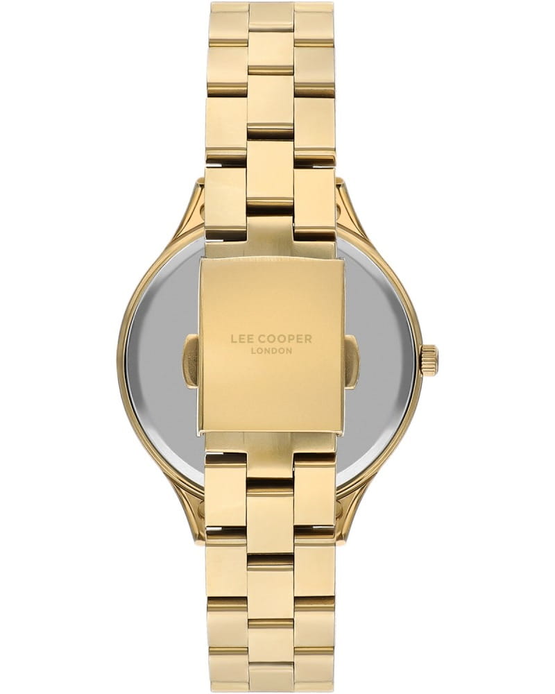Женские наручные часы Lee Cooper LC07568.110 — это изысканная модель, сочетающая элегантный дизайн и практичность. Корпус диаметром 36 мм выполнен из суперметалла, и золотистый безельБезельВнешний ободок, закрепляющий стекло. В спортивных часах так называется поворотное кольцо с делениями на циферблате, выполняет роль таймера – замеряет отрезки времени на шкале. Неподвижный безель – элемент декора. Однонаправленно вращающийся безель на дайверских часах позволяет фиксировать моменты погружения и выныривания на поверхность. из нержавеющей стали с IP-покрытиемIP-покрытиеМетод ионного напыления. Демонстрирует повышенную устойчивость к истиранию, окислению и химическим веществам. Под воздействием высокого давления и температуры около 1500°C молекулы металла надёжно соединяются с частицами корпуса часов. обеспечивает долговечность и надежность. Модель оснащена надёжным кварцевым механизмом, обеспечивающим точность и долговечность. Минеральное стеклоМинеральное стеклоМинеральное стекло представляет собой искусственно выращенный минерал кварца. Такое стекло отличается особой устойчивостью к повреждениям и царапинам. Уступает по некоторым качествам сапфировому стеклу. защищает циферблат от повреждений и царапин, сохраняя его презентабельный вид. Водонепроницаемость 30 метров защищает часы от случайных брызг, что делает их подходящими для повседневных ситуаций, таких как мытьё рук или прогулки под лёгким дождём. Раскладная застёжкаРаскладная застёжкаТакой тип застёжки используется только на браслетах из металла. Она никогда не раскрывается полностью, происходит разделение на 2 и более частей. Раскладывающая застёжка снизит вероятность потери часов к минимуму. обеспечивает удобную посадку и надёжность при ношении. В целом, эти часы являются отличным выбором для тех, кто ищет аксессуар, объединяющий классический стиль, уникальное цветовое решение и функциональность. Их гармоничное сочетание серебристых и золотистых оттенков с элегантным зелёным циферблатом и качественным механизмом делает их идеальным дополнением к любому гардеробу — от официального до повседневного.