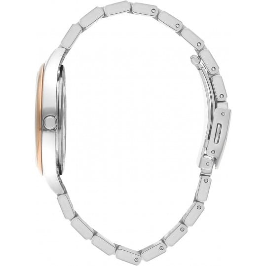 Женские наручные часы Lee Cooper LC07568.590 – это элегантная и современная модель, которая подходит для различных случаев и стилей. Эти часы станут отличным дополнением как для повседневного, так и для более формального образа. Корпус диаметром 36 мм выполнен из материала нержавеющей стали в сочетании серебристого и золотистого оттенков, придавая часам уникальный и утончённый вид. А безельБезельВнешний ободок, закрепляющий стекло. В спортивных часах так называется поворотное кольцо с делениями на циферблате, выполняет роль таймера – замеряет отрезки времени на шкале. Неподвижный безель – элемент декора. Однонаправленно вращающийся безель на дайверских часах позволяет фиксировать моменты погружения и выныривания на поверхность. золотистого цвета с IP-покрытиемIP-покрытиеМетод ионного напыления. Демонстрирует повышенную устойчивость к истиранию, окислению и химическим веществам. Под воздействием высокого давления и температуры около 1500°C молекулы металла надёжно соединяются с частицами корпуса часов. придает модели особый блеск. Синий циферблат с аналоговым отображением времени добавляет свежий и стильный акцент, делая часы привлекательными для различных случаев. Модель оснащена надёжным кварцевым механизмом, обеспечивающим точность и долговечность. Минеральное стеклоМинеральное стеклоМинеральное стекло представляет собой искусственно выращенный минерал кварца. Такое стекло отличается особой устойчивостью к повреждениям и царапинам. Уступает по некоторым качествам сапфировому стеклу. защищает циферблат от повреждений и царапин, сохраняя его презентабельный вид. Водонепроницаемость 30 метров защищает часы от случайных брызг, что делает их подходящими для повседневных ситуаций, таких как мытьё рук или прогулки под лёгким дождём. Раскладная застёжкаРаскладная застёжкаТакой тип застёжки используется только на браслетах из металла. Она никогда не раскрывается полностью, происходит разделение на 2 и более частей. Раскладывающая застёжка снизит вероятность потери часов к минимуму. обеспечивает удобную посадку и надёжность при ношении. В целом, эти часы являются отличным выбором для тех, кто ищет аксессуар, объединяющий классический стиль, уникальное цветовое решение и функциональность. Их гармоничное сочетание серебристых и золотистых оттенков с элегантным зелёным циферблатом и качественным механизмом делает их идеальным дополнением к любому гардеробу — от официального до повседневного.