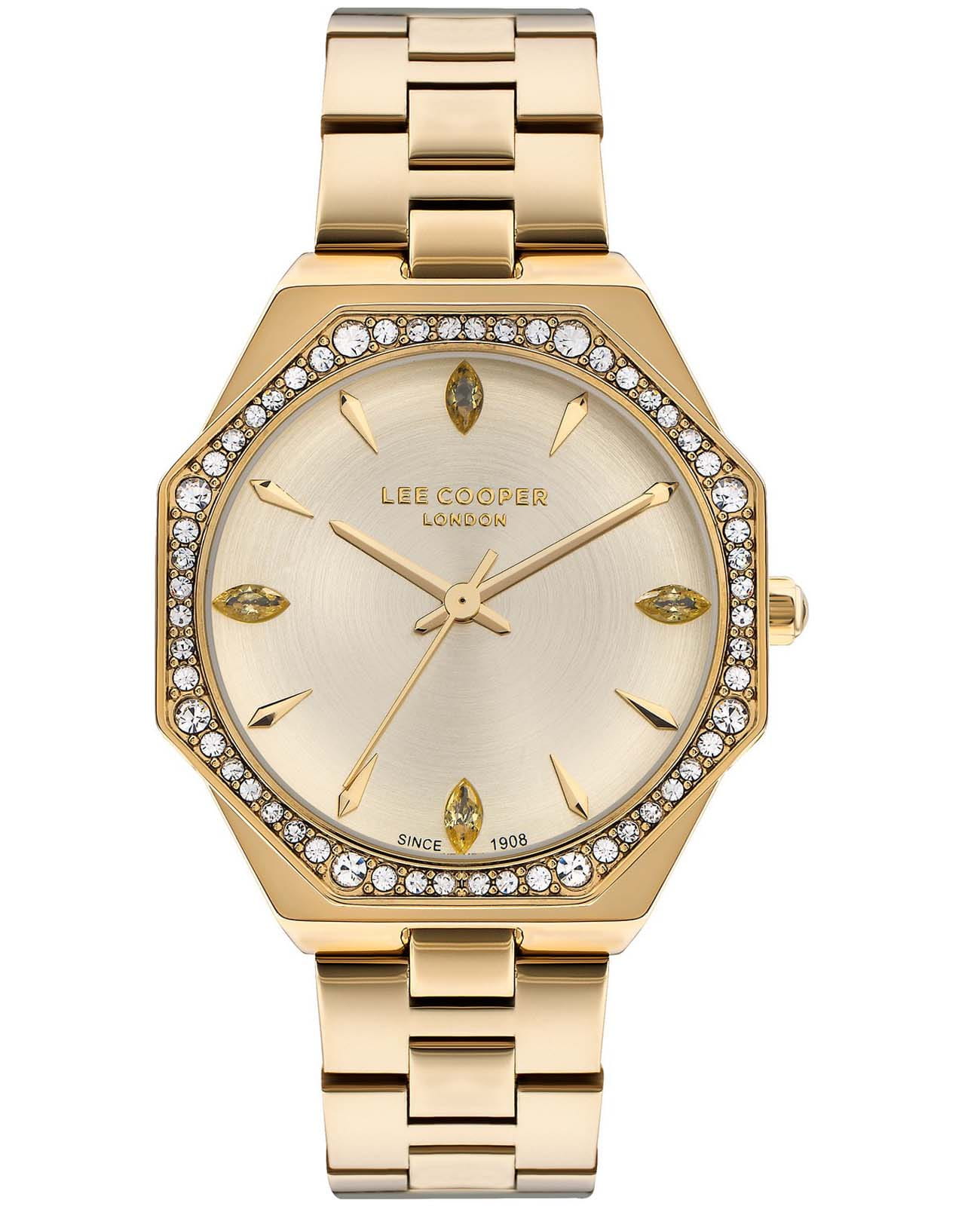 Женские часы Lee Cooper LC07599.110 — это стильное сочетание элегантности и современного дизайна. Круглый корпус диаметром 35 мм выполнен из суперметалла с IP-покрытиемIP-покрытиеМетод ионного напыления. Демонстрирует повышенную устойчивость к истиранию, окислению и химическим веществам. Под воздействием высокого давления и температуры около 1500°C молекулы металла надёжно соединяются с частицами корпуса часов. золотистого цвета. Циферблат защищен минеральным стекломМинеральное стеклоМинеральное стекло представляет собой искусственно выращенный минерал кварца. Такое стекло отличается особой устойчивостью к повреждениям и царапинам. Уступает по некоторым качествам сапфировому стеклу., обеспечивающий устойчивость к царапинам. Неподвижный безельБезельВнешний ободок, закрепляющий стекло. В спортивных часах так называется поворотное кольцо с делениями на циферблате, выполняет роль таймера – замеряет отрезки времени на шкале. Неподвижный безель – элемент декора. Однонаправленно вращающийся безель на дайверских часах позволяет фиксировать моменты погружения и выныривания на поверхность. и циферблат инкрустированы цирконами. Центральные часовая, минутная и секундная стрелки. Часы оснащены надежным кварцевым механизмом, источник питания - батарейка. Металлический браслет на раскладной застёжкеРаскладная застёжкаТакой тип застёжки используется только на браслетах из металла. Она никогда не раскрывается полностью, происходит разделение на 2 и более частей. Раскладывающая застёжка снизит вероятность потери часов к минимуму. гарантирует комфортную посадку на запястье. Водозащита 30 метров защищает модель от случайных брызг и дождя. Lee Cooper — отличный выбор для тех, кто ценит утонченность и качество.