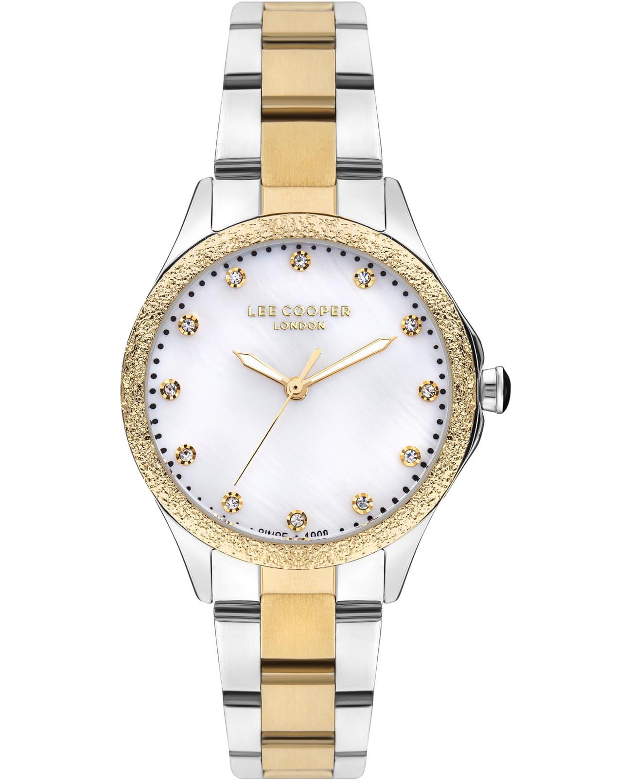 Женские наручные часы Lee Cooper LC07840.220 — это элегантная модель с утончённым дизайном. Корпус диаметром 35 мм выполнен из суперметалла с безелемБезельВнешний ободок, закрепляющий стекло. В спортивных часах так называется поворотное кольцо с делениями на циферблате, выполняет роль таймера – замеряет отрезки времени на шкале. Неподвижный безель – элемент декора. Однонаправленно вращающийся безель на дайверских часах позволяет фиксировать моменты погружения и выныривания на поверхность. с IP-покрытиемIP-покрытиеМетод ионного напыления. Демонстрирует повышенную устойчивость к истиранию, окислению и химическим веществам. Под воздействием высокого давления и температуры около 1500°C молекулы металла надёжно соединяются с частицами корпуса часов., что придаёт часам изысканный вид. Перламутровый циферблат украшен изящными вставками из циркония в виде меток времени и стрелками, обеспечивая удобное считывание времени. Циферблат защищён минеральным стекломМинеральное стеклоМинеральное стекло представляет собой искусственно выращенный минерал кварца. Такое стекло отличается особой устойчивостью к повреждениям и царапинам. Уступает по некоторым качествам сапфировому стеклу., устойчивым к царапинам. Часы работают на кварцевом механизме, обеспечивая точность хода. Часовая и минутная стрелки с люминесцентным покрытиемЛюминесцентное покрытиеПозволяет считывать показания времени в темноте. Производители наносят на стрелки, часовые индексы, безель или поверхность циферблата светонакопительный состав, дающий холодное свечение.. Браслет из нержавеющей стали с частичным IP-покрытиемIP-покрытиеМетод ионного напыления. Демонстрирует повышенную устойчивость к истиранию, окислению и химическим веществам. Под воздействием высокого давления и температуры около 1500°C молекулы металла надёжно соединяются с частицами корпуса часов. с раскладной застёжкойРаскладная застёжкаТакой тип застёжки используется только на браслетах из металла. Она никогда не раскрывается полностью, происходит разделение на 2 и более частей. Раскладывающая застёжка снизит вероятность потери часов к минимуму. гарантирует комфортное ношение и надёжную фиксацию на запястье. Водозащита 30 метров защищает часы от случайных брызг и дождя, делая их подходящими для повседневного использования.