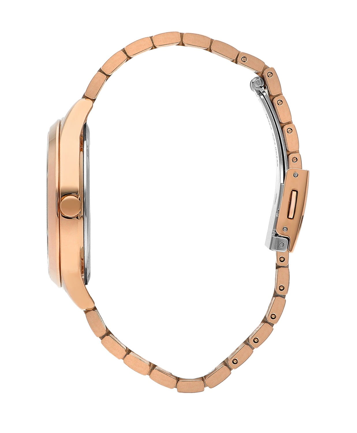 Женские часы Lee Cooper LC07865.430 — это стильное сочетание элегантности и современного дизайна. Круглый корпус диаметром 38 мм выполнен из суперметалла с IP-покрытиемIP-покрытиеМетод ионного напыления. Демонстрирует повышенную устойчивость к истиранию, окислению и химическим веществам. Под воздействием высокого давления и температуры около 1500°C молекулы металла надёжно соединяются с частицами корпуса часов. цвета розового золота, придающий модели особый блеск. Серебристый циферблат защищен минеральным стекломМинеральное стеклоМинеральное стекло представляет собой искусственно выращенный минерал кварца. Такое стекло отличается особой устойчивостью к повреждениям и царапинам. Уступает по некоторым качествам сапфировому стеклу., обеспечивающим устойчивость к царапинам. Часы оснащены надежным кварцевым механизмом, а стальной браслет с IP-покрытиемIP-покрытиеМетод ионного напыления. Демонстрирует повышенную устойчивость к истиранию, окислению и химическим веществам. Под воздействием высокого давления и температуры около 1500°C молекулы металла надёжно соединяются с частицами корпуса часов. на раскладной застёжкеРаскладная застёжкаТакой тип застёжки используется только на браслетах из металла. Она никогда не раскрывается полностью, происходит разделение на 2 и более частей. Раскладывающая застёжка снизит вероятность потери часов к минимуму. гарантирует комфортную посадку на запястье. Мультифункциональная модель с индикацией даты, дня недели, с дополнительным 24-х часовым индикатором. Водозащита 30 метров защищает модель от случайных брызг и дождя. Lee Cooper — отличный выбор для тех, кто ценит утонченность и качество.