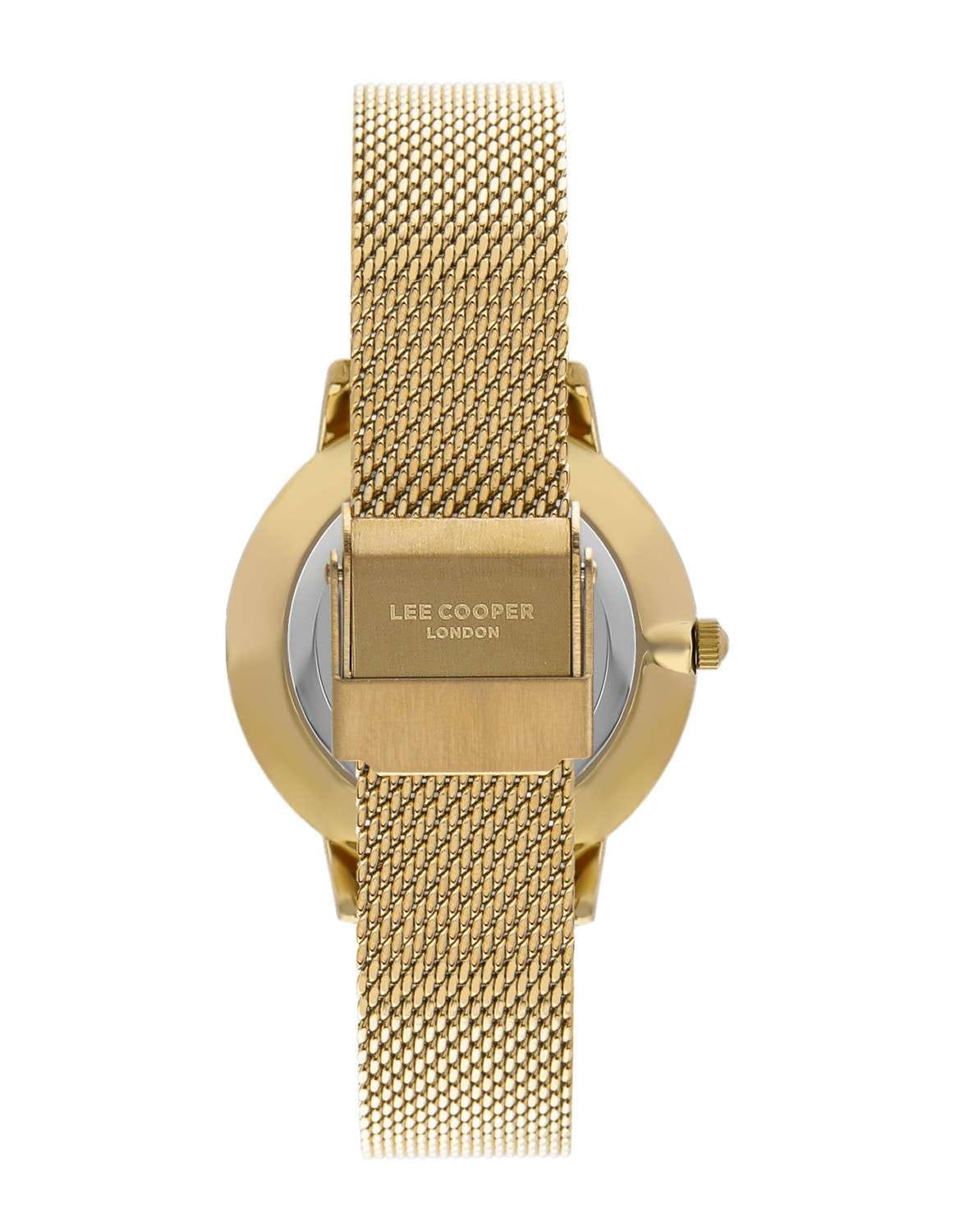 Женские часы Lee Cooper LC07875.120 — это стильное сочетание элегантности и современного дизайна. Изящный корпус выполнен из суперметалла с IP-покрытиемIP-покрытиеМетод ионного напыления. Демонстрирует повышенную устойчивость к истиранию, окислению и химическим веществам. Под воздействием высокого давления и температуры около 1500°C молекулы металла надёжно соединяются с частицами корпуса часов. золотого цвета. Изысканный циферблат инкрустирован цирконами, что придает модели особый блеск и защищен минеральным стекломМинеральное стеклоМинеральное стекло представляет собой искусственно выращенный минерал кварца. Такое стекло отличается особой устойчивостью к повреждениям и царапинам. Уступает по некоторым качествам сапфировому стеклу., обеспечивающим устойчивость к царапинам. Центральные часовая, минутная стрелки. Часы оснащены надежным кварцевым механизмом. Стальной браслет с IP-покрытиемIP-покрытиеМетод ионного напыления. Демонстрирует повышенную устойчивость к истиранию, окислению и химическим веществам. Под воздействием высокого давления и температуры около 1500°C молекулы металла надёжно соединяются с частицами корпуса часов. с застежкой, выполненной в виде раскладного замкаРаскладной замокДанный вариант застежки используется только на часах с металлическим браслетом. Отличительная особенность такого крепления в том, что длина браслета становится универсальной и вы можете самостоятельно отрегулировать нужный вам размер – застежка просто двигается по браслету часов., гарантирующего комфортное и безопасное ношение. Водозащита 30 метров защищает модель от случайных брызг и дождя. Lee Cooper — отличный выбор для тех, кто ценит утонченность и качество.