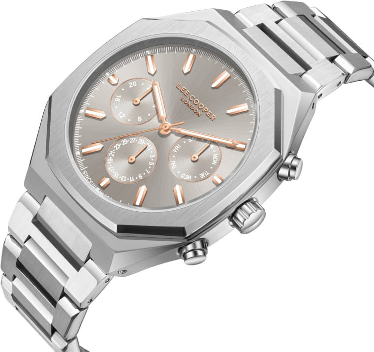Мужские наручные часы Lee Cooper LC08045.360 — это стильная модель из коллекции Contemporary, сочетающая в себе современный дизайн и функциональность. Часы оснащены кварцевым механизмом японского производства, который обеспечивает высокую точность хода и минимальное энергопотребление. Корпус часов изготовлен из высококачественного суперметалла серебристого цвета, что делает их устойчивыми к внешним воздействиям и придает благородный вид. Бежевый циферблат украшен стрелками и индексами серебристого цвета, гармонично дополняющими общий дизайн модели. Для защиты циферблата используется минеральное стеклоМинеральное стеклоМинеральное стекло представляет собой искусственно выращенный минерал кварца. Такое стекло отличается особой устойчивостью к повреждениям и царапинам. Уступает по некоторым качествам сапфировому стеклу.,  устойчивое к царапинам и механическим повреждениям. Корпус имеет круглую форму с диаметром 43 мм, что делает часы заметными и подходящими для повседневной носки. Браслет изготовлен из металла серебристого цвета, гармонично дополняя общий дизайн модели. Модель обладает водонепроницаемостью до 50 метров (5 АТМ), что позволяет использовать часы в повседневной жизни, включая контакт с водой при мытье рук или дожде. Эти часы станут идеальным выбором для мужчин, ценящих стиль, качество и функциональность.