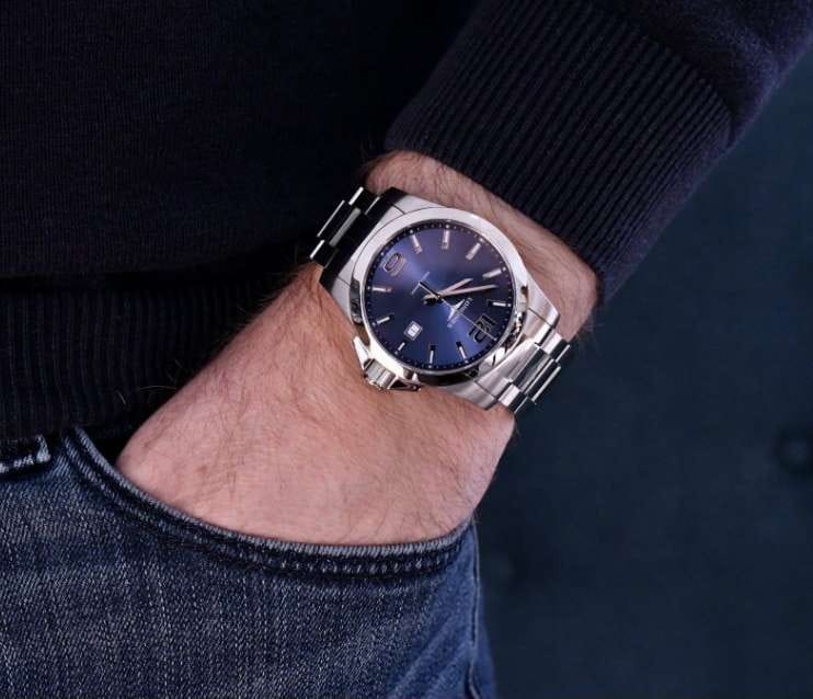 Мужские швейцарские часы Longines Conquest L3.760.4.96.6 – воплощение спортивного стиля и классики, созданное для современных и активных мужчин. Эта модель сочетает в себе утончённый дизайн и передовые технологии, что делает её отличным выбором как для повседневной носки, так и для деловых встреч. Внутри корпуса из прочной нержавеющей стали 316L установлен надёжный швейцарский кварцевый механизм L157, обеспечивающий высокую точность хода и долговечность. Сапфировое стеклоСапфировое стеклоПрочный и надёжный материал из кристалла сапфира синтетического происхождения, характеризующийся особой твёрдостью и устойчивостью к царапинам и повреждениям. отличается устойчивостью к появлению царапин и превосходной прозрачностью, гарантируя отличную читаемость циферблата при любых условиях. Класс водозащиты 300 метров позволяет не только плавать, но и заниматься дайвингом и другими экстремальными водными видами спорта, не беспокоясь о сохранности механизма. Яркая люминесцентная подсветкаЛюминесцентное покрытиеПозволяет считывать показания времени в темноте. Производители наносят на стрелки, часовые индексы, безель или поверхность циферблата светонакопительный состав, дающий холодное свечение. обеспечивает удобство использования в темноте или при плохом освещении. В числе дополнительных функций — календарь и индикатор EOLEOLПредставляет собой систему, уведомляющую владельца часов о необходимости замены элемента питания. За 2 недели до полного разряда батарейки секундная стрелка перестаёт ходить чётко и начинает перепрыгивать на 3-4 деления., который оповещает о необходимости замены батарейки. Стальной браслет с застёжкой-бабочкойЗастёжка "бабочка"Такой вид застёжки дополняется предохранителями, помогающими избежать случайного раскрытия браслета. Обладают изящным исполнением. гарантирует комфортную и надёжную посадку на запястье, а также добавляет элегантности внешнему виду аксессуара.