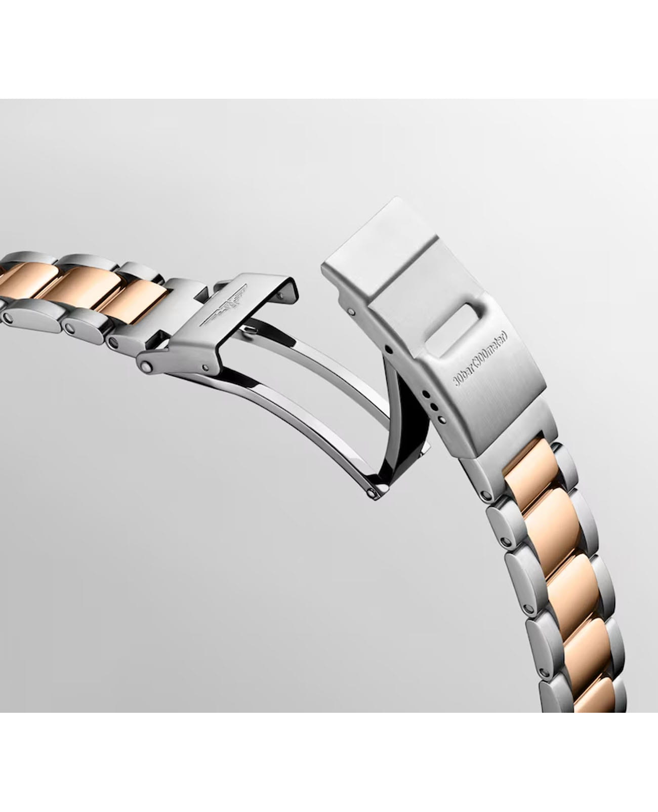 Женские швейцарские часы для дайвинга Longines HydroConquest L3.370.3.89.6, кварцевый механизм с высокой точностью. Сапфировое стеклоСапфировое стеклоПрочный и надёжный материал из кристалла сапфира синтетического происхождения, характеризующийся особой твёрдостью и устойчивостью к царапинам и повреждениям. с многослойным антибликовым покрытием с обеих сторон, устойчивое к появлению царапин, обладающее высокой прозрачностью. Корпус часов изготовлен из стали. Вращающийся безельБезельВнешний ободок, закрепляющий стекло. В спортивных часах так называется поворотное кольцо с делениями на циферблате, выполняет роль таймера – замеряет отрезки времени на шкале. Неподвижный безель – элемент декора. Однонаправленно вращающийся безель на дайверских часах позволяет фиксировать моменты погружения и выныривания на поверхность. из стали с PVD-покрытиемPVDУльтратонкое покрытие наносится в технике вакуумного напыления, сочетает в себе нитрид титана особой прочности со слоем золота или оксида хрома. Несёт в себе декоративную или защитную функцию. и керамики, защищенный от царапин, никогда не изнашивается и не выцветает. Циферблат с 11 бриллиантами группы Top Wesselton VS-SI общим весом 0.044 карата. Стрелки и метки с люминесцентным покрытиемЛюминесцентное покрытиеПозволяет считывать показания времени в темноте. Производители наносят на стрелки, часовые индексы, безель или поверхность циферблата светонакопительный состав, дающий холодное свечение.. Окошко даты находится в положении 3 часов. Класс водозащиты: 300 метров, позволит плавать, нырять и заниматься другими водными видами спорта. Стальной браслет с частичным PVD-покрытиемPVDУльтратонкое покрытие наносится в технике вакуумного напыления, сочетает в себе нитрид титана особой прочности со слоем золота или оксида хрома. Несёт в себе декоративную или защитную функцию. на раскладной застёжкеРаскладная застёжкаТакой тип застёжки используется только на браслетах из металла. Она никогда не раскрывается полностью, происходит разделение на 2 и более частей. Раскладывающая застёжка снизит вероятность потери часов к минимуму..