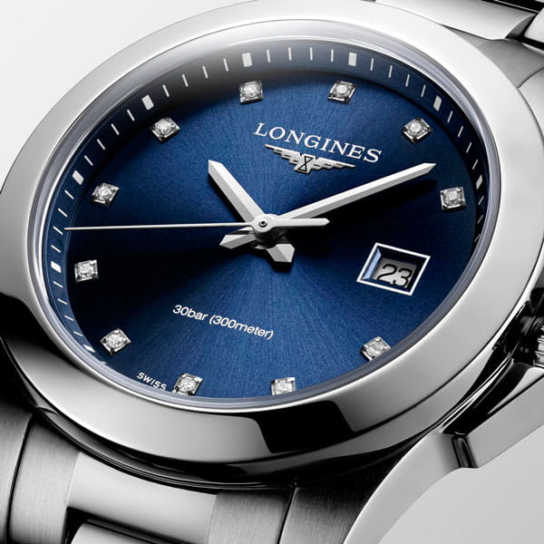 Женские кварцевые швейцарские часы Longines Conquest L3.377.4.97.6 помогут дополнить деловой образ. Сапфировое стеклоСапфировое стеклоПрочный и надёжный материал из кристалла сапфира синтетического происхождения, характеризующийся особой твёрдостью и устойчивостью к царапинам и повреждениям. с антибликовым покрытием, устойчивое к мелким механическим повреждениям. Модель с синим циферблатом выполнена из нержавеющей стали 316L, устойчивой к деформации и повреждениям. Швейцарский кварцевый калибр L152 измеряет время с максимальной точностью хода. Класс водозащиты: 300 метров, позволит плавать, нырять и заниматься другими водными видами спорта. Стальной на раскладной застёжкеРаскладная застёжкаТакой тип застёжки используется только на браслетах из металла. Она никогда не раскрывается полностью, происходит разделение на 2 и более частей. Раскладывающая застёжка снизит вероятность потери часов к минимуму..