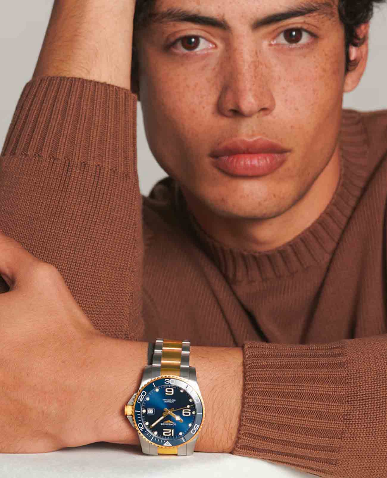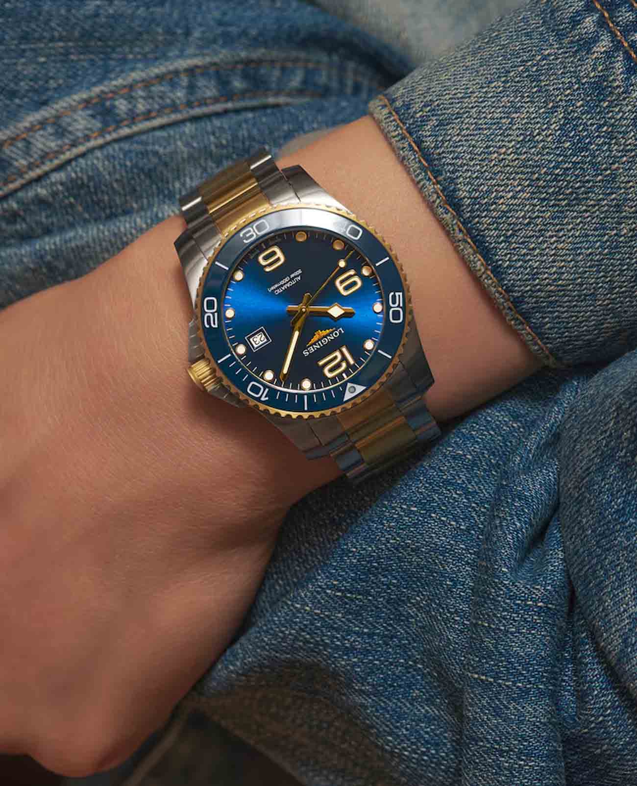 Мужские механические швейцарские часы с автоподзаводом Longines HydroConquest L3.781.3.96.7. Сапфировое стеклоСапфировое стеклоПрочный и надёжный материал из кристалла сапфира синтетического происхождения, характеризующийся особой твёрдостью и устойчивостью к царапинам и повреждениям. с антибликовым покрытием, устойчивое к мелким механическим повреждениям. Корпус часов изготовлен из нержавеющей стали. Вращающийся стальной безельБезельВнешний ободок, закрепляющий стекло. В спортивных часах так называется поворотное кольцо с делениями на циферблате, выполняет роль таймера – замеряет отрезки времени на шкале. Неподвижный безель – элемент декора. Однонаправленно вращающийся безель на дайверских часах позволяет фиксировать моменты погружения и выныривания на поверхность. с люминесцентным покрытиемЛюминесцентное покрытиеПозволяет считывать показания времени в темноте. Производители наносят на стрелки, часовые индексы, безель или поверхность циферблата светонакопительный состав, дающий холодное свечение. Superluminova из нержавеющей стали с PVD-покрытиемPVDУльтратонкое покрытие наносится в технике вакуумного напыления, сочетает в себе нитрид титана особой прочности со слоем золота или оксида хрома. Несёт в себе декоративную или защитную функцию. и керамики, защищенный от царапин, никогда не изнашивается и не выцветает. Стрелки и метки с люминесцентным покрытиемЛюминесцентное покрытиеПозволяет считывать показания времени в темноте. Производители наносят на стрелки, часовые индексы, безель или поверхность циферблата светонакопительный состав, дающий холодное свечение.. Окошко даты находится в положении 3 часа. Класс водозащиты: 300 метров, позволит плавать, нырять и заниматься другими водными видами спорта. Стальной браслет с частичным PVD-покрытиемPVDУльтратонкое покрытие наносится в технике вакуумного напыления, сочетает в себе нитрид титана особой прочности со слоем золота или оксида хрома. Несёт в себе декоративную или защитную функцию. на раскладной застёжкеРаскладная застёжкаТакой тип застёжки используется только на браслетах из металла. Она никогда не раскрывается полностью, происходит разделение на 2 и более частей. Раскладывающая застёжка снизит вероятность потери часов к минимуму. с удлинением для дайверов.