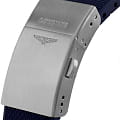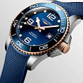 Мужские швейцарские механические часы для дайвинга Longines Hydroconquest L3.782.3.98.9. Сапфировое стеклоСапфировое стеклоПрочный и надёжный материал из кристалла сапфира синтетического происхождения, характеризующийся особой твёрдостью и устойчивостью к царапинам и повреждениям. с многослойным антибликовым покрытием с обеих сторон, устойчивое к появлению царапин, обладающее высокой прозрачностью. Корпус часов изготовлен из стали. Вращающийся безельБезельВнешний ободок, закрепляющий стекло. В спортивных часах так называется поворотное кольцо с делениями на циферблате, выполняет роль таймера – замеряет отрезки времени на шкале. Неподвижный безель – элемент декора. Однонаправленно вращающийся безель на дайверских часах позволяет фиксировать моменты погружения и выныривания на поверхность. из стали с PVD-покрытиемPVDУльтратонкое покрытие наносится в технике вакуумного напыления, сочетает в себе нитрид титана особой прочности со слоем золота или оксида хрома. Несёт в себе декоративную или защитную функцию. и керамики, защищенный от царапин, никогда не изнашивается и не выцветает. Стрелки и метки с люминесцентным покрытиемЛюминесцентное покрытиеПозволяет считывать показания времени в темноте. Производители наносят на стрелки, часовые индексы, безель или поверхность циферблата светонакопительный состав, дающий холодное свечение.. Окошко даты находится в положении 3 часов. Класс водозащиты: 300 метров, позволит плавать, нырять и заниматься другими водными видами спорта. Каучковый ремешок на раскладной застёжкеРаскладная застёжкаТакой тип застёжки используется только на браслетах из металла. Она никогда не раскрывается полностью, происходит разделение на 2 и более частей. Раскладывающая застёжка снизит вероятность потери часов к минимуму..