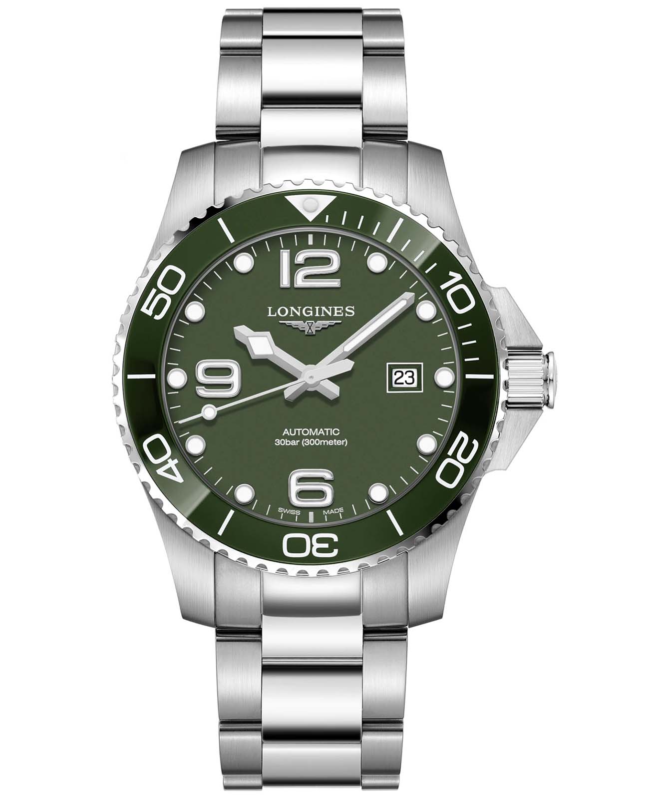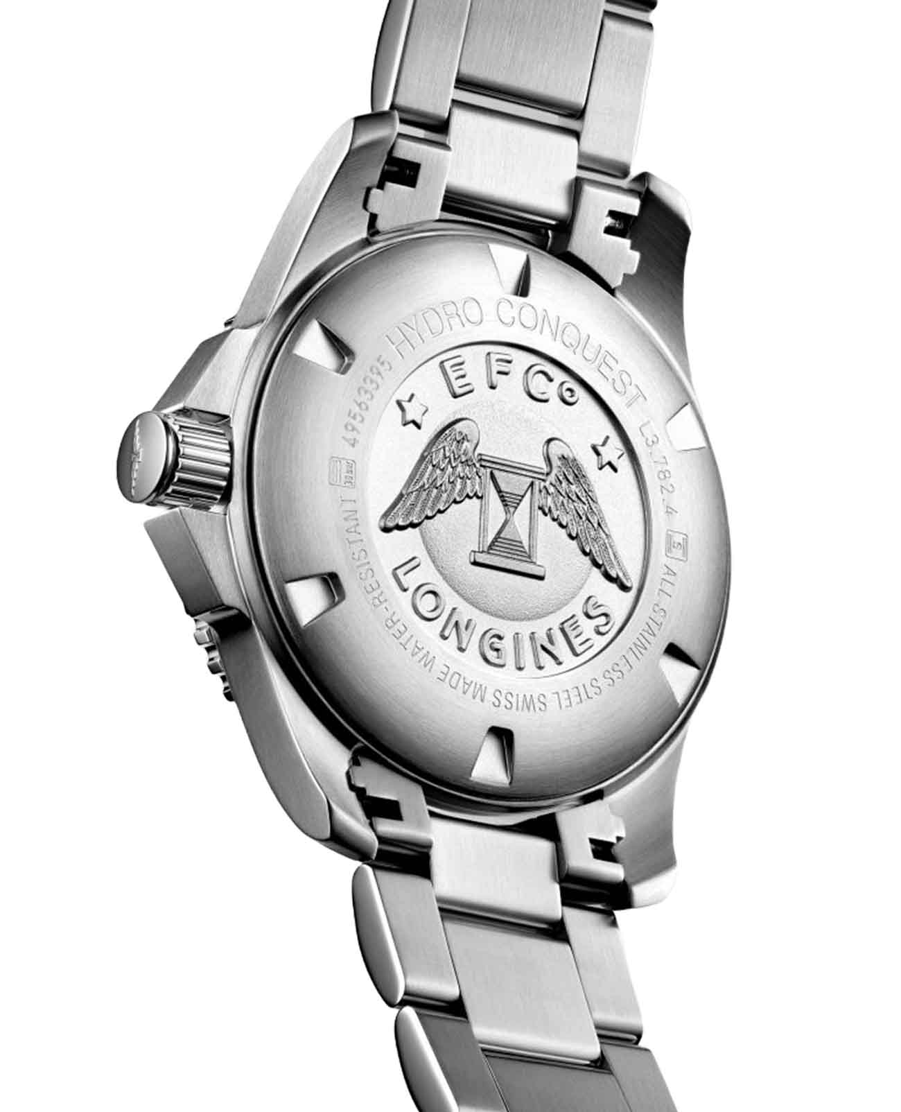 Мужские механические швейцарские часы с автоподзаводом Longines HydroConquest модели L3.782.4.06.6 представляют собой образец надежности и функциональности, созданный специально для любителей активного образа жизни и водных приключений. Особенностью этой модели является сапфировое стеклоСапфировое стеклоПрочный и надёжный материал из кристалла сапфира синтетического происхождения, характеризующийся особой твёрдостью и устойчивостью к царапинам и повреждениям. с антибликовым покрытиемАнтибликовое покрытиеСлой оксида металла в 0,13-0,3 микрон, благодаря которому стекло часов не бликует и не отражает свет. Антибликовое покрытие уменьшает отражение света в 10 раз, обеспечивая отличную читаемость показателей циферблата., которое защищает циферблат от мелких механических повреждений и обеспечивает отличную видимость в любых условиях освещения. Прочное стекло также устойчиво к появлению царапин, сохраняя свой первоначальный внешний вид на протяжении многих лет. Корпус часов выполнен из высококачественной нержавеющей стали, что придает им долговечность и устойчивость к коррозии. Важной деталью является вращающийся стальной безельБезельВнешний ободок, закрепляющий стекло. В спортивных часах так называется поворотное кольцо с делениями на циферблате, выполняет роль таймера – замеряет отрезки времени на шкале. Неподвижный безель – элемент декора. Однонаправленно вращающийся безель на дайверских часах позволяет фиксировать моменты погружения и выныривания на поверхность., изготовленный из комбинации нержавеющей стали и керамики. Такое исполнение обеспечивает не только привлекательный внешний вид, но и повышенную износостойкость: безель защищен от царапин, не теряет своего цвета со временем и сохраняет яркую люминесценцию в темноте. Все элементы циферблата, включая стрелки и метки, покрыты люминесцентным составомЛюминесцентное покрытиеПозволяет считывать показания времени в темноте. Производители наносят на стрелки, часовые индексы, безель или поверхность циферблата светонакопительный состав, дающий холодное свечение. Superluminova, что облегчает считывание времени даже в условиях низкой освещенности. Дата отображается в окошке, расположенном в положении 3 часа, что добавляет дополнительное удобство в повседневном использовании. Класс водозащиты этих часов составляет 300 метров, что делает их идеальными для плавания, ныряния и других водных видов спорта. Надежный стальной браслет оснащен раскладной застёжкойРаскладная застёжкаТакой тип застёжки используется только на браслетах из металла. Она никогда не раскрывается полностью, происходит разделение на 2 и более частей. Раскладывающая застёжка снизит вероятность потери часов к минимуму., обеспечивающей комфортное ношение и легкую регулировку длины.