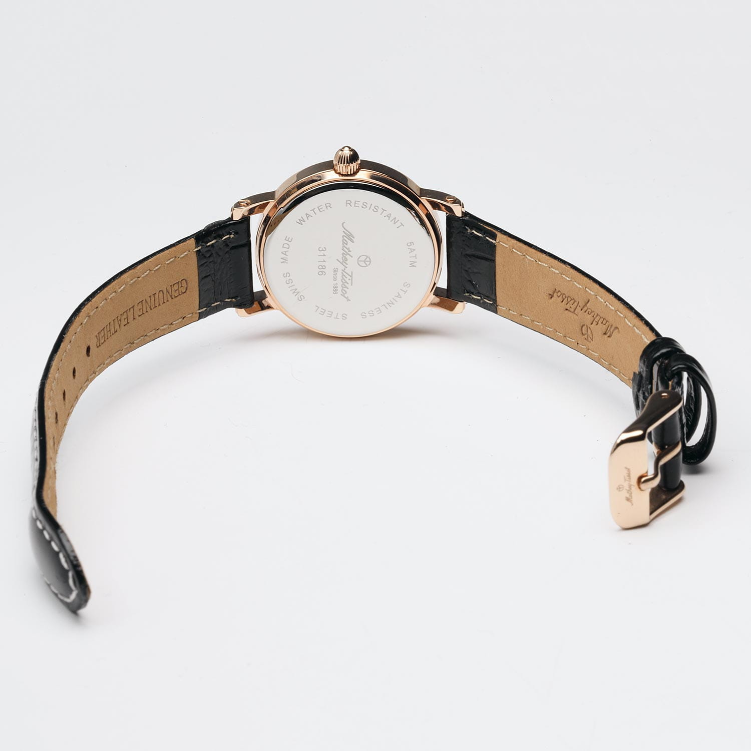 Женские кварцевые часы Mathey-Tissot City Leather D31186PN — это стильное сочетание элегантности и современного дизайна. Изящный корпус выполнен из нержавеющей стали 316L с розовым PVD-покрытиемPVDУльтратонкое покрытие наносится в технике вакуумного напыления, сочетает в себе нитрид титана особой прочности со слоем золота или оксида хрома. Несёт в себе декоративную или защитную функцию., что придаст образу женственности и романтизма. Изысканный циферблат с метками в виде штрихов придает модели особый блеск. Циферблат защищен минеральным стекломМинеральное стеклоМинеральное стекло представляет собой искусственно выращенный минерал кварца. Такое стекло отличается особой устойчивостью к повреждениям и царапинам. Уступает по некоторым качествам сапфировому стеклу. с сапфировым покрытием, обеспечивающий устойчивость к царапинам. Окошко даты находится в положении 3 часа. Часы оснащены надежным кварцевым механизмом. Кожаный ремень на стандартной застежке, гарантирует комфортное и безопасное ношение. Класс водозащиты: 50 метров позволит защитить корпус от случайных брызг или капель дождя. Mathey-Tissot — отличный выбор для тех, кто ценит утонченность и качество.