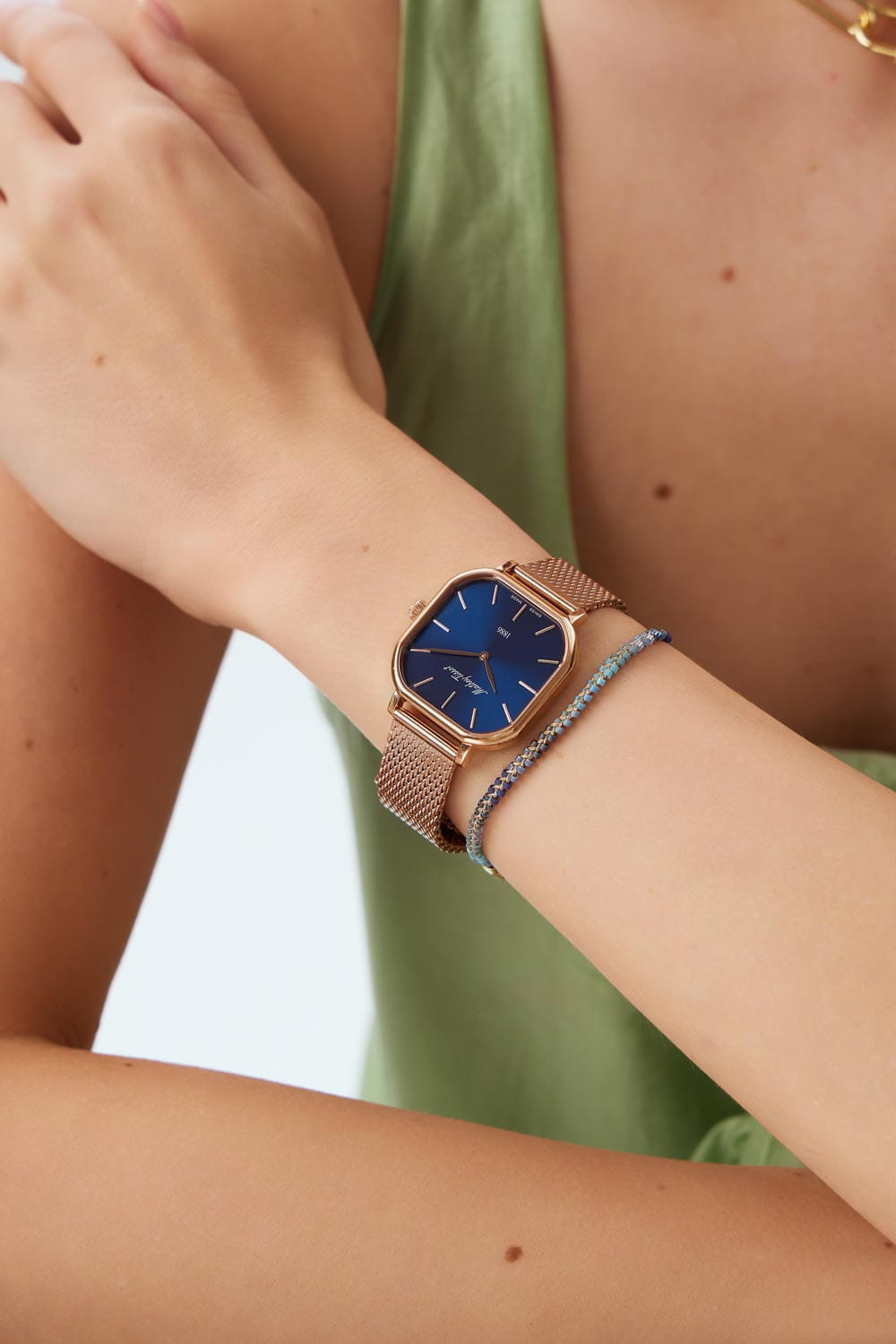 Женские кварцевые часы Mathey-Tissot Monsoon D7917PBU — это стильное сочетание элегантности и современного дизайна. Изящный корпус выполнен из нержавеющей стали с PVD-покрытиемPVDУльтратонкое покрытие наносится в технике вакуумного напыления, сочетает в себе нитрид титана особой прочности со слоем золота или оксида хрома. Несёт в себе декоративную или защитную функцию., размером 32х32 мм, что придаст образу элегантности и надежности. Изысканный циферблат с метками в виде штрихов придает модели особый блеск. Циферблат выполнен по технологии Sunray (солнечные лучи) и защищен минеральным стекломМинеральное стеклоМинеральное стекло представляет собой искусственно выращенный минерал кварца. Такое стекло отличается особой устойчивостью к повреждениям и царапинам. Уступает по некоторым качествам сапфировому стеклу. с сапфировым покрытием, обеспечивает устойчивость к царапинам. Часы оснащены надежным кварцевым механизмом. Стальной браслет с PVD-покрытиемPVDУльтратонкое покрытие наносится в технике вакуумного напыления, сочетает в себе нитрид титана особой прочности со слоем золота или оксида хрома. Несёт в себе декоративную или защитную функцию. миланского плетения на раскладном замкеРаскладная застёжкаТакой тип застёжки используется только на браслетах из металла. Она никогда не раскрывается полностью, происходит разделение на 2 и более частей. Раскладывающая застёжка снизит вероятность потери часов к минимуму., гарантирует комфортное и безопасное ношение. Класс водозащиты: 50 метров позволит защитить корпус от случайных брызг или капель дождя. Mathey-Tissot  — отличный выбор для тех, кто ценит утонченность и качество.