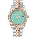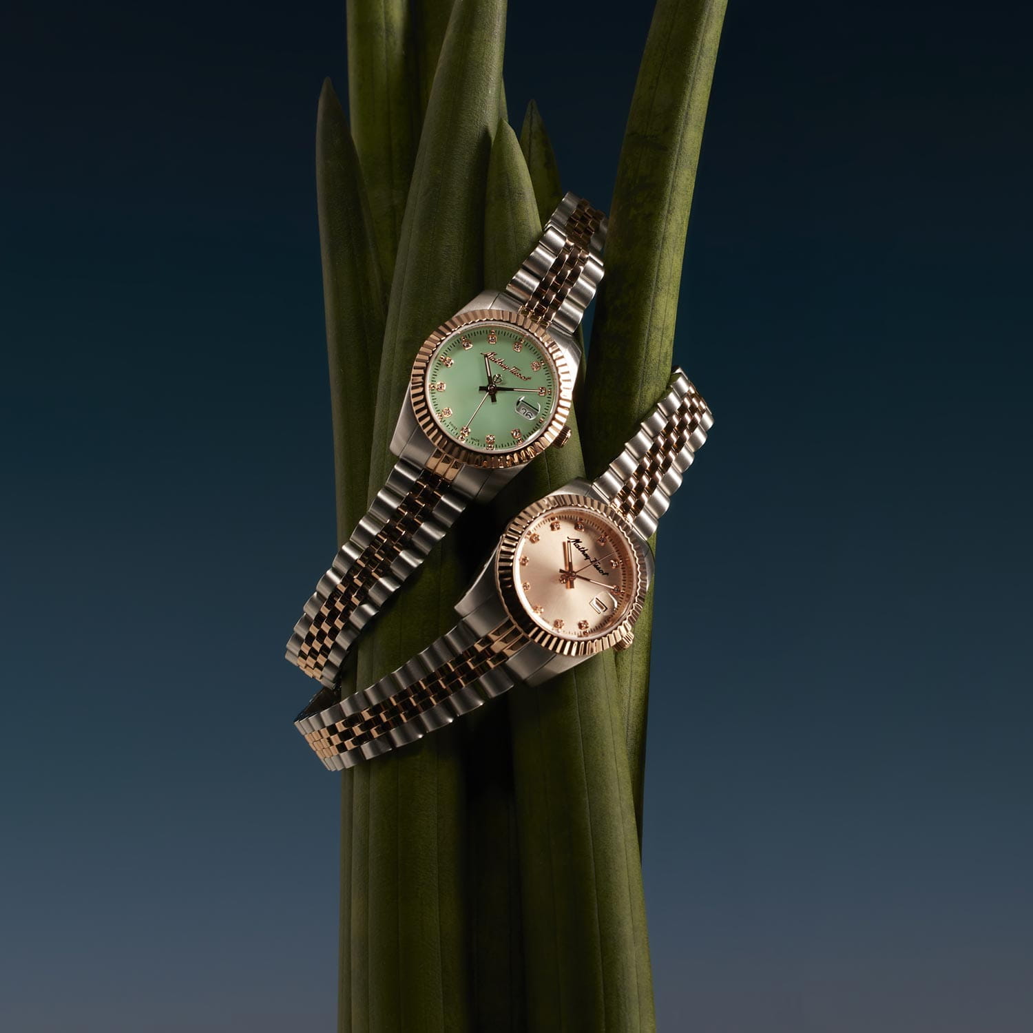 Женские кварцевые часы Mathey-Tissot Mathy D810RV — это стильное сочетание элегантности и современного дизайна. Изящный корпус выполнен из нержавеющей стали, диаметром 32 мм, что придаст образу женственности и романтизма. Изысканный циферблат с метками в виде точек украшены кристаллами, что придает модели особый блеск. Циферблат защищен минеральным стекломМинеральное стеклоМинеральное стекло представляет собой искусственно выращенный минерал кварца. Такое стекло отличается особой устойчивостью к повреждениям и царапинам. Уступает по некоторым качествам сапфировому стеклу., обеспечивающий устойчивость к царапинам. Стрелки с люминесцентным покрытиемЛюминесцентное покрытиеПозволяет считывать показания времени в темноте. Производители наносят на стрелки, часовые индексы, безель или поверхность циферблата светонакопительный состав, дающий холодное свечение.. БезельБезельВнешний ободок, закрепляющий стекло. В спортивных часах так называется поворотное кольцо с делениями на циферблате, выполняет роль таймера – замеряет отрезки времени на шкале. Неподвижный безель – элемент декора. Однонаправленно вращающийся безель на дайверских часах позволяет фиксировать моменты погружения и выныривания на поверхность. с PVD-покрытиемPVDУльтратонкое покрытие наносится в технике вакуумного напыления, сочетает в себе нитрид титана особой прочности со слоем золота или оксида хрома. Несёт в себе декоративную или защитную функцию. золотистого цвета. Окошко даты находится в положении 3 часа. Часы оснащены надежным кварцевым механизмом. Стальной браслет с частичным PVD-покрытиемPVDУльтратонкое покрытие наносится в технике вакуумного напыления, сочетает в себе нитрид титана особой прочности со слоем золота или оксида хрома. Несёт в себе декоративную или защитную функцию. на раскладной застёжке с фиксаторомРаскладная застёжкаТакой тип застёжки используется только на браслетах из металла. Она никогда не раскрывается полностью, происходит разделение на 2 и более частей. Раскладывающая застёжка снизит вероятность потери часов к минимуму., гарантирует комфортное и безопасное ношение. Класс водозащиты: 50 метров позволит защитить корпус от случайных брызг или капель дождя. Mathey-Tissot  — отличный выбор для тех, кто ценит утонченность и качество.