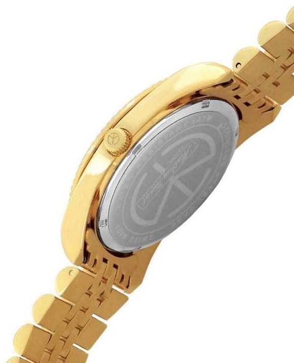 Мужские кварцевые часы Mathey-Tissot Mathy H809PQYI — это стильное сочетание элегантности и современного дизайна. Изящный корпус выполнен из нержавеющей стали с PVD-покрытиемPVDУльтратонкое покрытие наносится в технике вакуумного напыления, сочетает в себе нитрид титана особой прочности со слоем золота или оксида хрома. Несёт в себе декоративную или защитную функцию. золотистого цвета, диаметром 40 мм, что придаст образу элегантности и надежности. Изысканный циферблат с метками в виде точек придает модели особый блеск. Циферблат защищен минеральным стекломМинеральное стеклоМинеральное стекло представляет собой искусственно выращенный минерал кварца. Такое стекло отличается особой устойчивостью к повреждениям и царапинам. Уступает по некоторым качествам сапфировому стеклу., обеспечивает устойчивость к царапинам. БезельБезельВнешний ободок, закрепляющий стекло. В спортивных часах так называется поворотное кольцо с делениями на циферблате, выполняет роль таймера – замеряет отрезки времени на шкале. Неподвижный безель – элемент декора. Однонаправленно вращающийся безель на дайверских часах позволяет фиксировать моменты погружения и выныривания на поверхность. украшен кристаллами. Стрелки с люминесцентным покрытиемЛюминесцентное покрытиеПозволяет считывать показания времени в темноте. Производители наносят на стрелки, часовые индексы, безель или поверхность циферблата светонакопительный состав, дающий холодное свечение.. Окошко даты находится в положении 3 часа. Часы оснащены надежным кварцевым механизмом. Стальной браслет с PVD-покрытиемPVDУльтратонкое покрытие наносится в технике вакуумного напыления, сочетает в себе нитрид титана особой прочности со слоем золота или оксида хрома. Несёт в себе декоративную или защитную функцию. на раскладной застёжке с фиксаторомРаскладная застёжкаТакой тип застёжки используется только на браслетах из металла. Она никогда не раскрывается полностью, происходит разделение на 2 и более частей. Раскладывающая застёжка снизит вероятность потери часов к минимуму., гарантирует комфортное и безопасное ношение. Рифленая заводная головка. Класс водозащиты: 50 метров позволит защитить корпус от случайных брызг или капель дождя. Mathey-Tissot — отличный выбор для тех, кто ценит утонченность и качество.