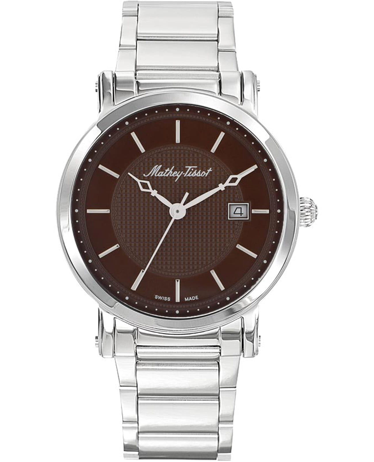 Мужские кварцевые часы Mathey-Tissot City Metal HB611251MAM — это стильное сочетание элегантности и современного дизайна. Изящный корпус выполнен из нержавеющей стали 316L серебристого цвета, диаметром 42 мм, что придаст образу элегантности и надежности. Изысканный циферблат с метками в виде штрихов придает модели особый блеск. Циферблат защищен минеральным стекломМинеральное стеклоМинеральное стекло представляет собой искусственно выращенный минерал кварца. Такое стекло отличается особой устойчивостью к повреждениям и царапинам. Уступает по некоторым качествам сапфировому стеклу. с сапфировым покрытием, обеспечивающий устойчивость к царапинам. Окошко даты находится в положении 3 часа. Часы оснащены надежным кварцевым механизмом. Стальной браслет на раскладной застёжкеРаскладная застёжкаТакой тип застёжки используется только на браслетах из металла. Она никогда не раскрывается полностью, происходит разделение на 2 и более частей. Раскладывающая застёжка снизит вероятность потери часов к минимуму., гарантирует комфортное и безопасное ношение. Класс водозащиты: 30 метров позволит защитить корпус от случайных брызг или капель дождя. Mathey-Tissot — отличный выбор для тех, кто ценит утонченность и качество.