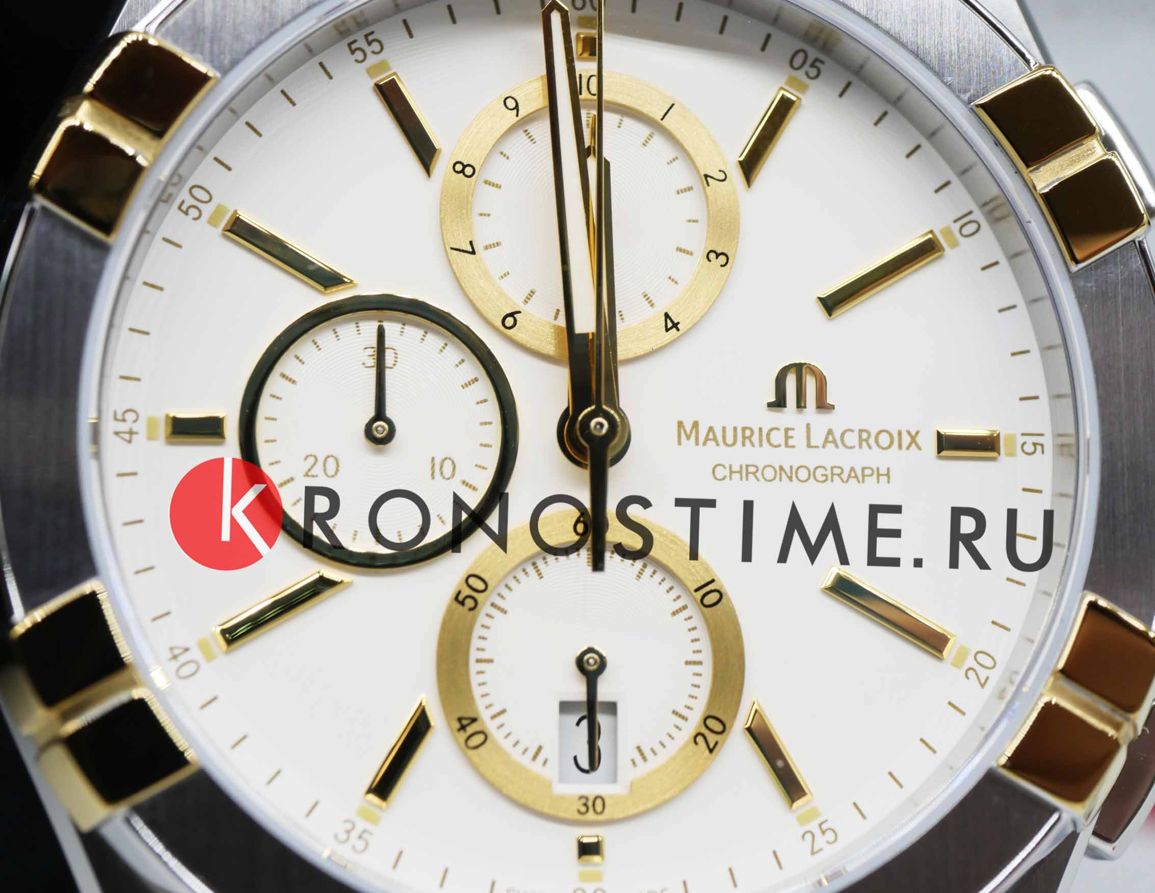 Maurice Lacroix AI1118-PVY03-130-1 из коллекции AIKON — элегантные мужские кварцевые часы, сочетающие стиль и функциональность. Корпус диаметром 42 мм выполнен из нержавеющей стали и безельБезельВнешний ободок, закрепляющий стекло. В спортивных часах так называется поворотное кольцо с делениями на циферблате, выполняет роль таймера – замеряет отрезки времени на шкале. Неподвижный безель – элемент декора. Однонаправленно вращающийся безель на дайверских часах позволяет фиксировать моменты погружения и выныривания на поверхность. с жёлтым PVD-покрытиемPVDУльтратонкое покрытие наносится в технике вакуумного напыления, сочетает в себе нитрид титана особой прочности со слоем золота или оксида хрома. Несёт в себе декоративную или защитную функцию., что придаёт часам прочность и современный вид. Сапфировое стеклоСапфировое стеклоПрочный и надёжный материал из кристалла сапфира синтетического происхождения, характеризующийся особой твёрдостью и устойчивостью к царапинам и повреждениям. с двойным антибликовым покрытием защищает от царапин и обеспечивает отличную читаемость. Белый циферблат дополнен жёлтыми позолоченными метками и стрелками с люминесцентным покрытиемЛюминесцентное покрытиеПозволяет считывать показания времени в темноте. Производители наносят на стрелки, часовые индексы, безель или поверхность циферблата светонакопительный состав, дающий холодное свечение., что улучшает видимость в условиях низкой освещённости. Окошко даты расположено на отметке «6 часов». Часы оснащены швейцарским кварцевым механизмом, обеспечивающим точный и надёжный ход. Функция хронографа включает центральную секундную стрелку, 30-минутный счётчик на отметке «9 часов» и 1/10-секундный счётчик на отметке «12 часов». Водозащита до 10 ATM (100 метров) делает их подходящими для плавания. Двухцветный браслет из нержавеющей стали с жёлтым PVD-покрытиемPVDУльтратонкое покрытие наносится в технике вакуумного напыления, сочетает в себе нитрид титана особой прочности со слоем золота или оксида хрома. Несёт в себе декоративную или защитную функцию. оснащён системой быстрой замены на застёжке-бабочке с кнопкамиЗастёжка "бабочка"Такой вид застёжки дополняется предохранителями, помогающими избежать случайного раскрытия браслета. Обладают изящным исполнением. , обеспечивая комфорт и удобство. Maurice Lacroix AI1118-PVY03-130-1 — выбор для мужчин, которые ценят стиль, функциональность и высокое качество.