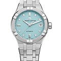Часы Maurice Lacroix Aikon Automatic Limited Summer Edition 35 mm (AI6006-SS00F-451-C) из лимитированной коллекции отличаются элегантностью и современным стилем. Корпус диаметром 35 мм выполнен из нержавеющей стали с чередованием полированных и сатинированных поверхностей, а циферблат бирюзового цвета с узором "clous de Paris" украшен восьмью бриллиантами.