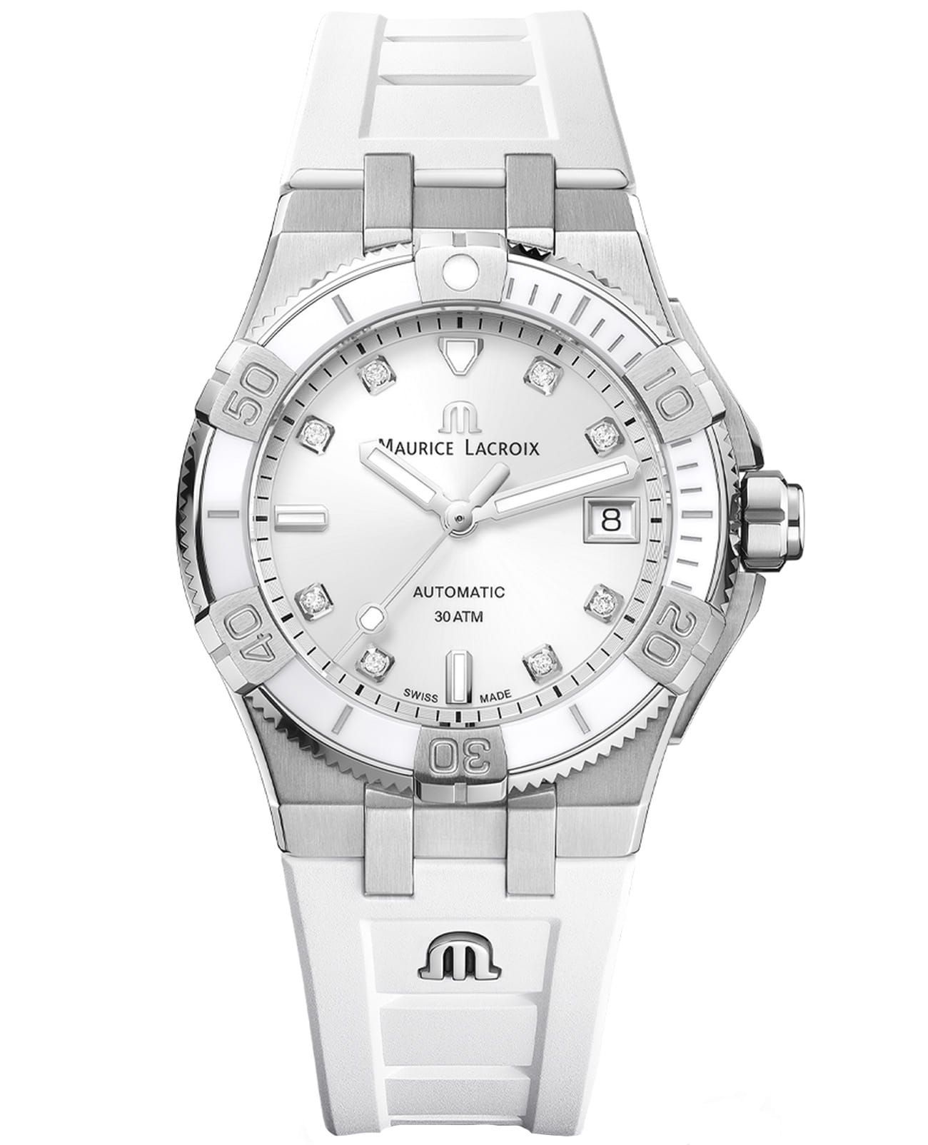 Женские механические часы Maurice Lacroix Aikon Automatic Venturer AI6057-SSL70-150-7 с высокой точностью. Сапфировое стеклоСапфировое стеклоПрочный и надёжный материал из кристалла сапфира синтетического происхождения, характеризующийся особой твёрдостью и устойчивостью к царапинам и повреждениям. устойчивое к появлению царапин, обладающее высокой прозрачностью. Стрелки и метки с люминесцентным покрытиемЛюминесцентное покрытиеПозволяет считывать показания времени в темноте. Производители наносят на стрелки, часовые индексы, безель или поверхность циферблата светонакопительный состав, дающий холодное свечение.. Поворотный керамический безельБезельВнешний ободок, закрепляющий стекло. В спортивных часах так называется поворотное кольцо с делениями на циферблате, выполняет роль таймера – замеряет отрезки времени на шкале. Неподвижный безель – элемент декора. Однонаправленно вращающийся безель на дайверских часах позволяет фиксировать моменты погружения и выныривания на поверхность.. Класс водозащиты: 300 метров, позволит плавать, нырять и заниматься другими водными видами спорта. Корпус часов изготовлен из нержавеющей стали. Каучуковый ремешок на раскладной застёжкеРаскладная застёжкаТакой тип застёжки используется только на браслетах из металла. Она никогда не раскрывается полностью, происходит разделение на 2 и более частей. Раскладывающая застёжка снизит вероятность потери часов к минимуму..