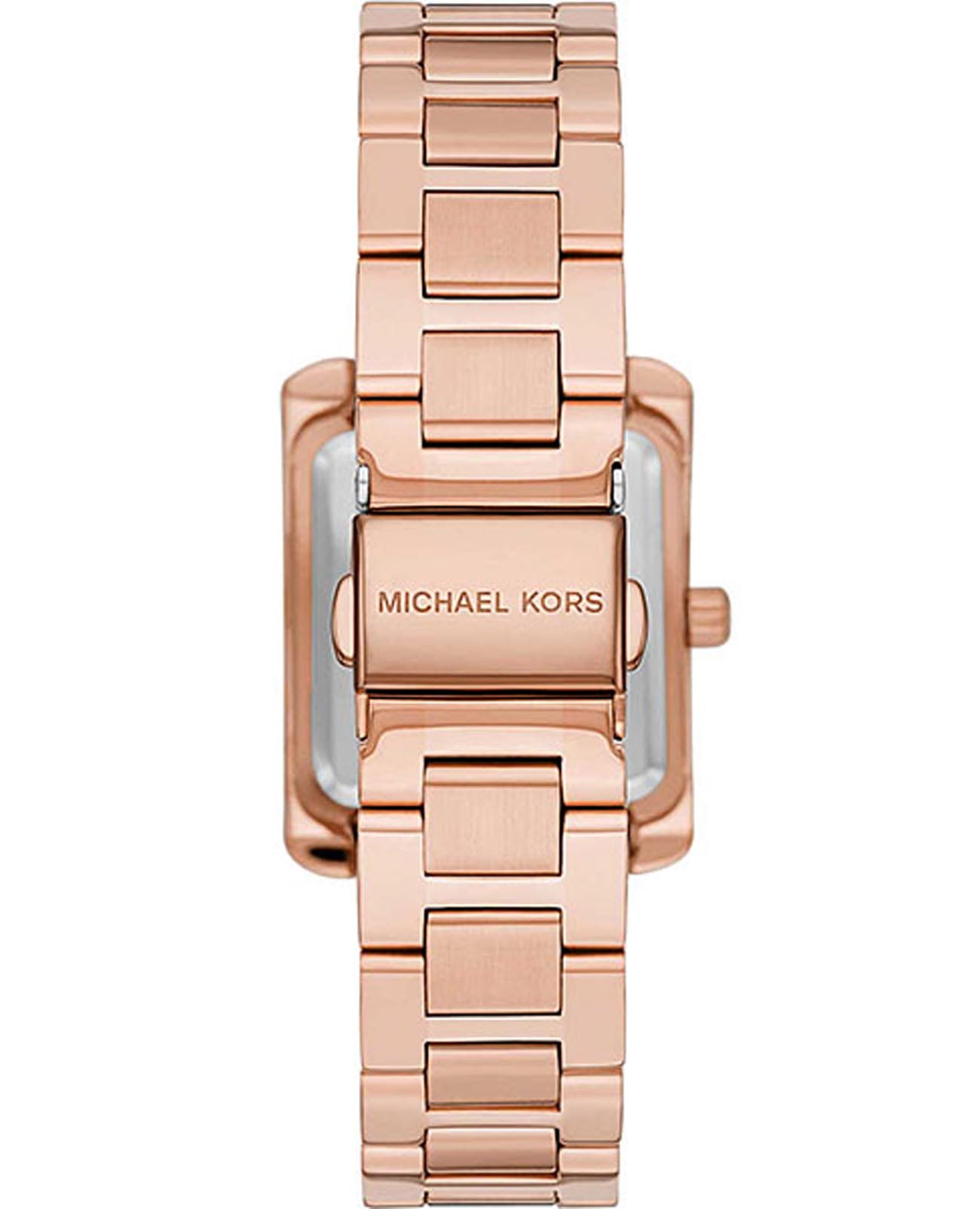Женские американские наручные часы с минеральным стекломМинеральное стеклоМинеральное стекло представляет собой искусственно выращенный минерал кварца. Такое стекло отличается особой устойчивостью к повреждениям и царапинам. Уступает по некоторым качествам сапфировому стеклу. Michael Kors Emery MK4641, кварцевый механизм с высокой точностью. Минеральное стеклоМинеральное стеклоМинеральное стекло представляет собой искусственно выращенный минерал кварца. Такое стекло отличается особой устойчивостью к повреждениям и царапинам. Уступает по некоторым качествам сапфировому стеклу. устойчивое к появлению царапин, обладающее высокой прозрачностью. Корпус и браслет часов изготовлены из нержавеющей стали с PVD-покрытиемPVDУльтратонкое покрытие наносится в технике вакуумного напыления, сочетает в себе нитрид титана особой прочности со слоем золота или оксида хрома. Несёт в себе декоративную или защитную функцию.. БезельБезельВнешний ободок, закрепляющий стекло. В спортивных часах так называется поворотное кольцо с делениями на циферблате, выполняет роль таймера – замеряет отрезки времени на шкале. Неподвижный безель – элемент декора. Однонаправленно вращающийся безель на дайверских часах позволяет фиксировать моменты погружения и выныривания на поверхность. из нержавеющей стали украшен кристаллами. Класс водозащиты: 50 метров, позволит защитить корпус от случайных брызг или капель дождя. Стальной браслет на раскладной застёжкеРаскладная застёжкаТакой тип застёжки используется только на браслетах из металла. Она никогда не раскрывается полностью, происходит разделение на 2 и более частей. Раскладывающая застёжка снизит вероятность потери часов к минимуму..