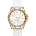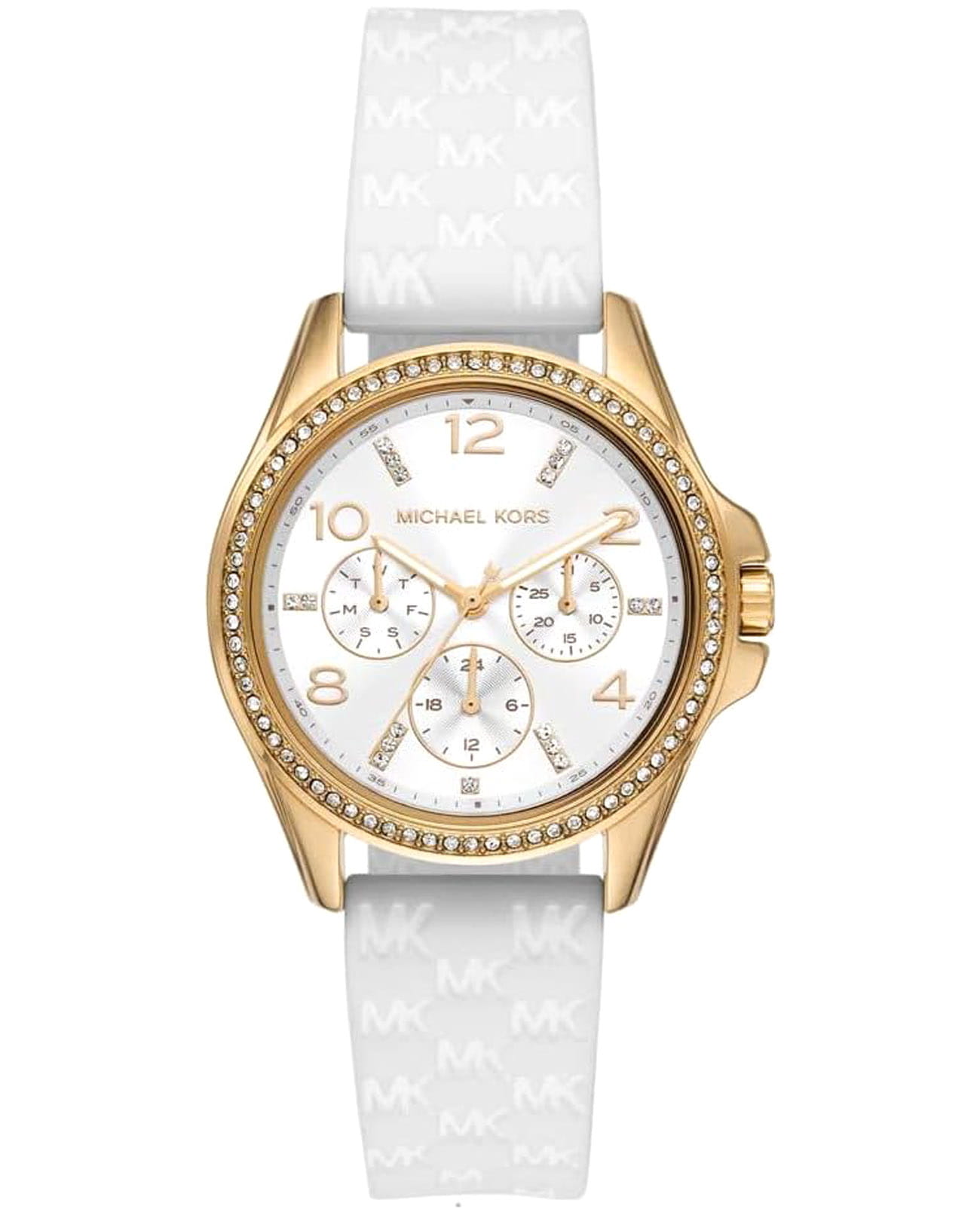 Идеальный аксессуар, который придаст женскому образу завершенность и особый шарм. Женские американские часы Michael Kors Pilot MK7372 имеют кварцевый механизм с высокой точностью. Корпус часов изготовлен из нержавеющей стали с золотистым PVD-покрытиемPVDУльтратонкое покрытие наносится в технике вакуумного напыления, сочетает в себе нитрид титана особой прочности со слоем золота или оксида хрома. Несёт в себе декоративную или защитную функцию., диаметром 36 мм. Циферблат с метками в виде штрихов и арабских цифр защищен минеральным стекломМинеральное стеклоМинеральное стекло представляет собой искусственно выращенный минерал кварца. Такое стекло отличается особой устойчивостью к повреждениям и царапинам. Уступает по некоторым качествам сапфировому стеклу., что обеспечивает надежную защиту от царапин и повреждений. БезельБезельВнешний ободок, закрепляющий стекло. В спортивных часах так называется поворотное кольцо с делениями на циферблате, выполняет роль таймера – замеряет отрезки времени на шкале. Неподвижный безель – элемент декора. Однонаправленно вращающийся безель на дайверских часах позволяет фиксировать моменты погружения и выныривания на поверхность. украшен кристаллами. Стрелки с люминесцентным покрытиемЛюминесцентное покрытиеПозволяет считывать показания времени в темноте. Производители наносят на стрелки, часовые индексы, безель или поверхность циферблата светонакопительный состав, дающий холодное свечение.. Класс водозащиты: 30 метров позволит защитить корпус от случайных брызг или капель дождя. Удобный силиконовый ремешок с классической застежкой обеспечивает надежную фиксацию на запястье и легкость в надевании и снятии. 24-часовой формат времени для удобства планирования. Эти часы станут отличным дополнением к любому наряду, подчеркивая индивидуальность и стиль их обладательницы.
