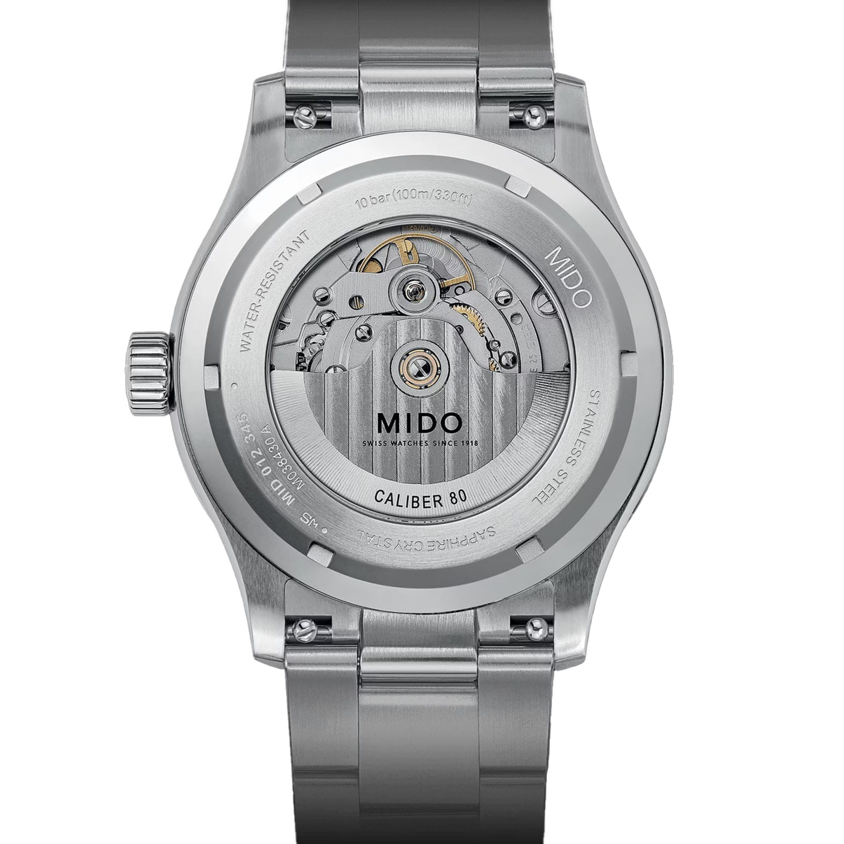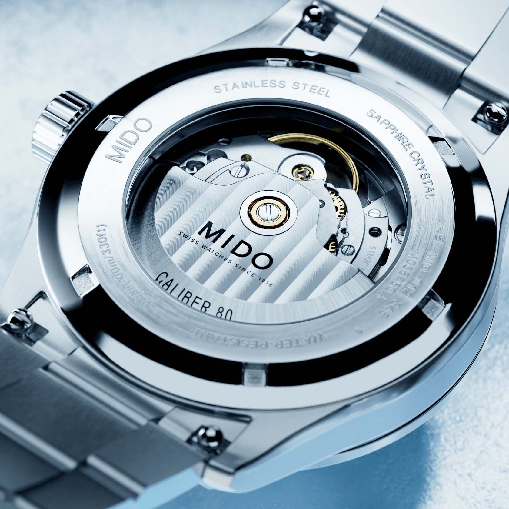 Вертикальная атласная отделка градиентного циферблата Multifort M напоминает о характерных чертах коллекции Côtes de Genève. Безупречное люминесцентное покрытиеЛюминесцентное покрытиеПозволяет считывать показания времени в темноте. Производители наносят на стрелки, часовые индексы, безель или поверхность циферблата светонакопительный состав, дающий холодное свечение. Super-LumiNova® создает контраст и читаемость на стрелках и круглых указателях. Легендарная надежность Multifort соответствует ритму знаменитого калибра 80. Запас хода до 80 часов обеспечивается Nivachron™Nivachron™Специально разработанный инновационный сплав Nivachron™ повышает устойчивость часов к воздействию магнитных полей. – революционного материала, обеспечивающего потрясающую точность. Mido предлагает Multifort M с системой смены ремня без инструментов, в стальном или текстильном исполнении на резиновой основе.